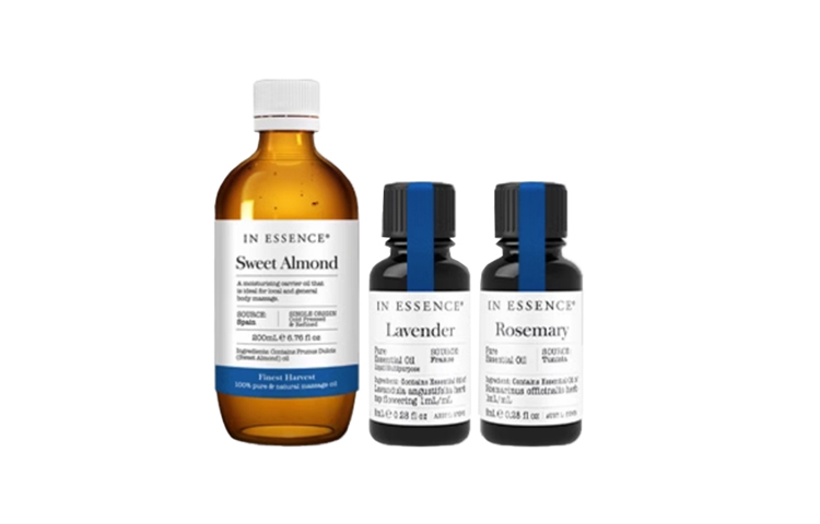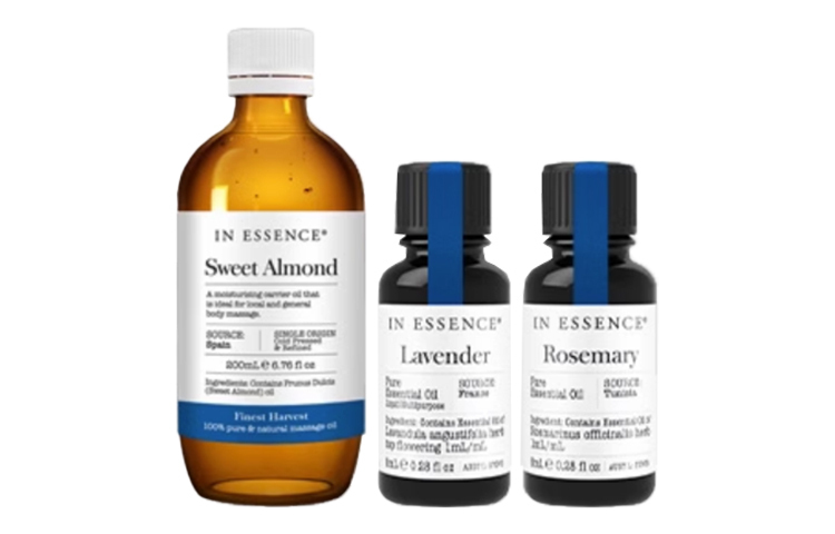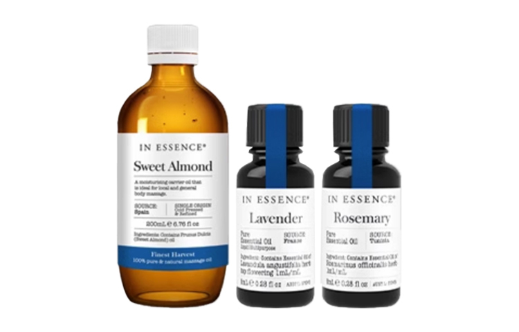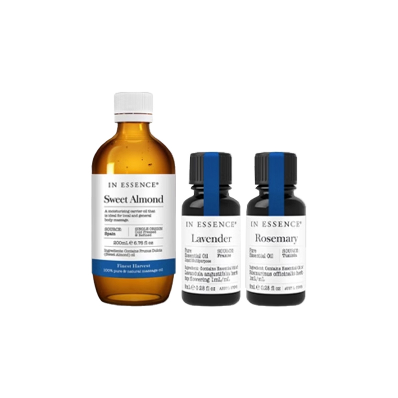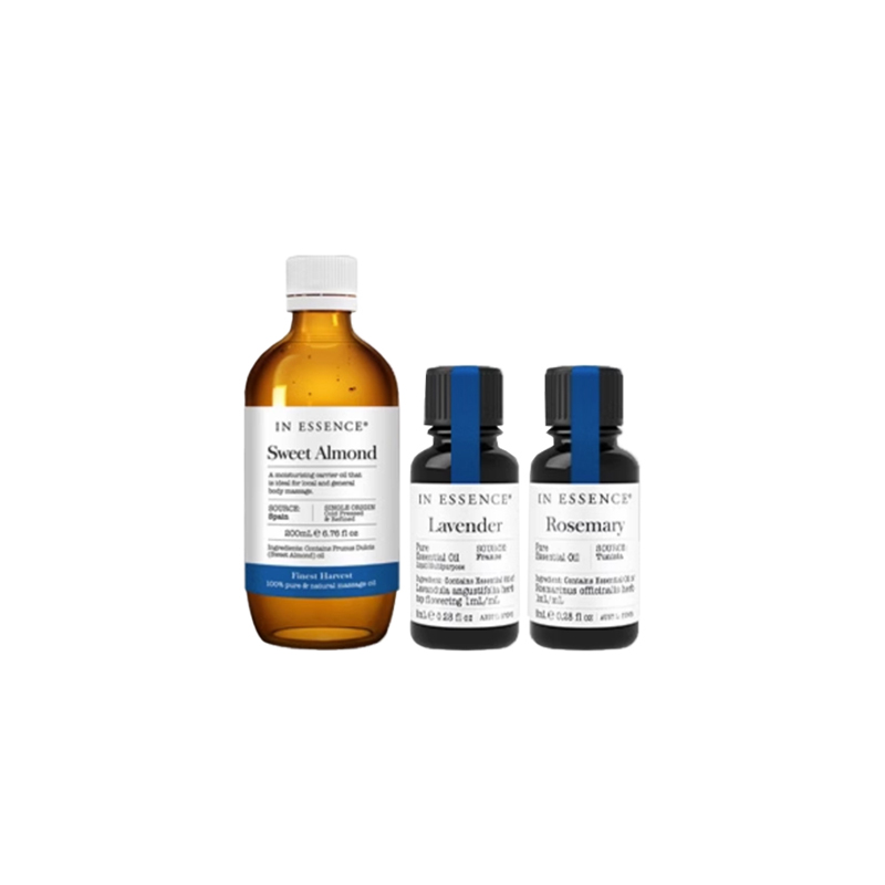 Характеристики: масло сладкого миндаля 200 мл + эфирное масло лаванды 8 мл + эфирное масло розмарина 8 мл