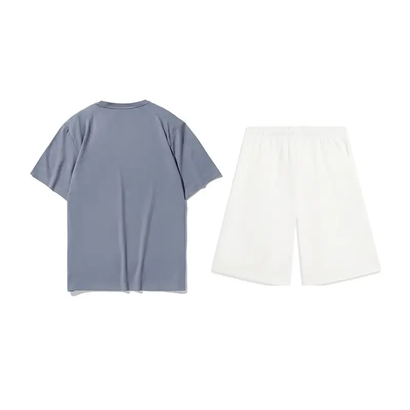 Комплект: синяя рубашка с короткими рукавами Flint Stones + белые спортивные штаны