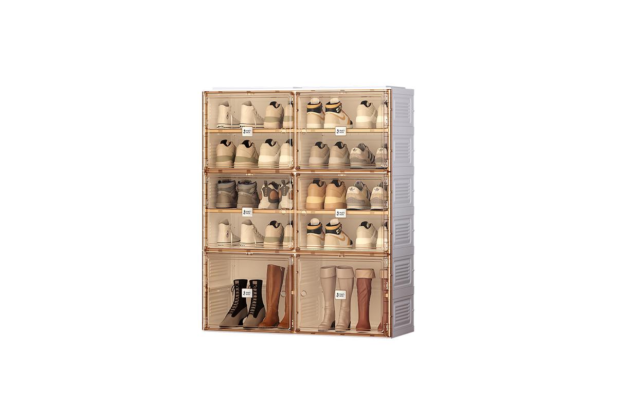 Характеристики: 2 ряда по 8 слоев, 16 отделений (8 дверей), вмещают 32 пары обуви - 2 поколения