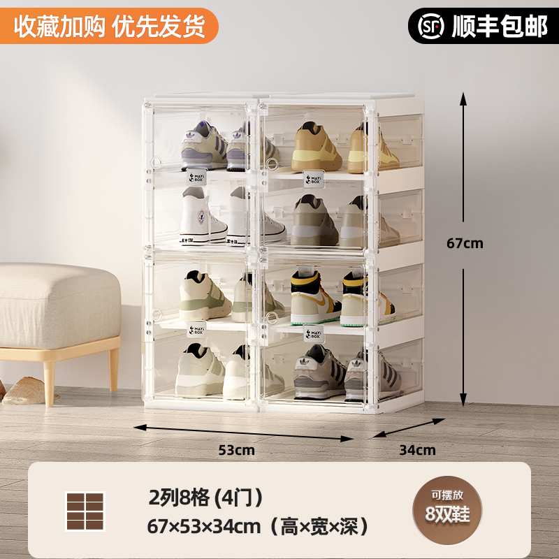 Характеристики: 2 ряда, 8 отделений (четырехдверный) для хранения 8 упаковок обуви