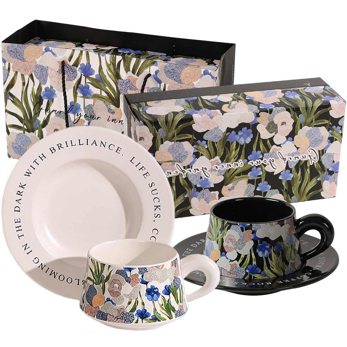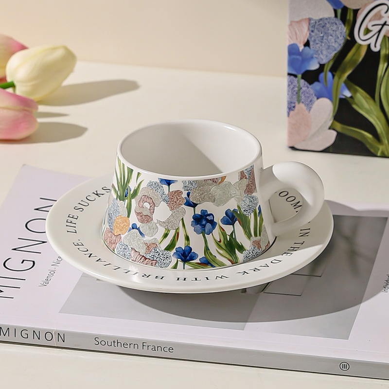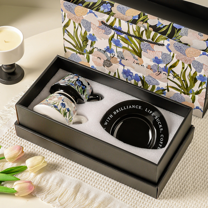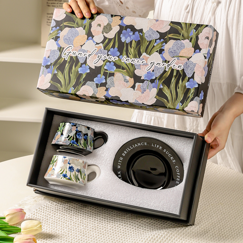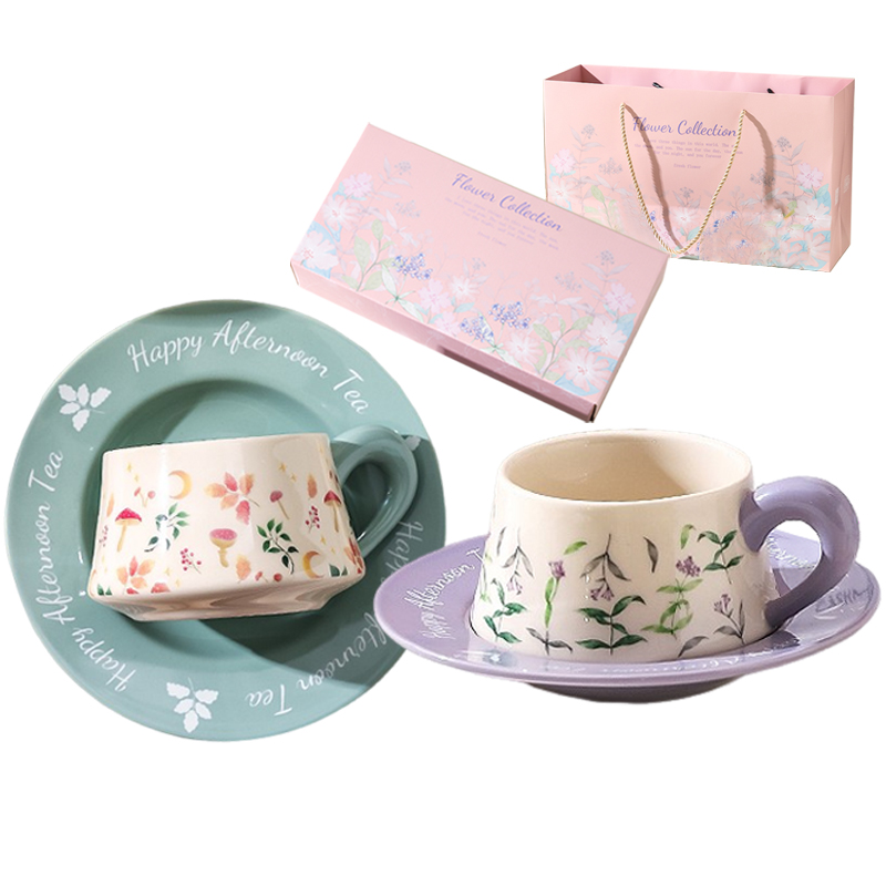 Цвет: [Премиум-коробка]Блюдце для кофейной чашки Flower Collection (фиолетовый+зеленый)