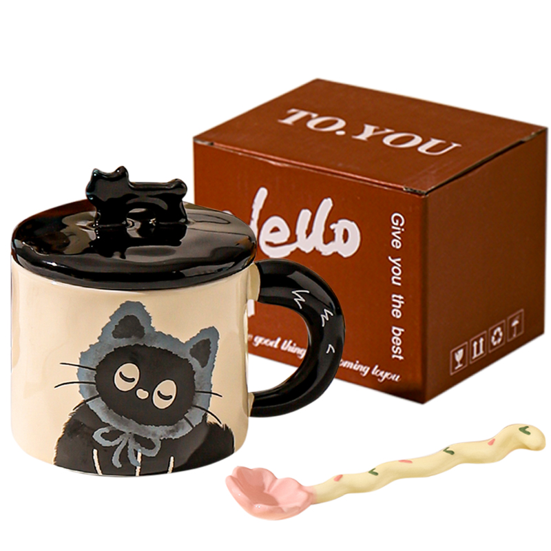 Цвет: [Многоцветный набор] Синяя кошачья чашка с ложкой