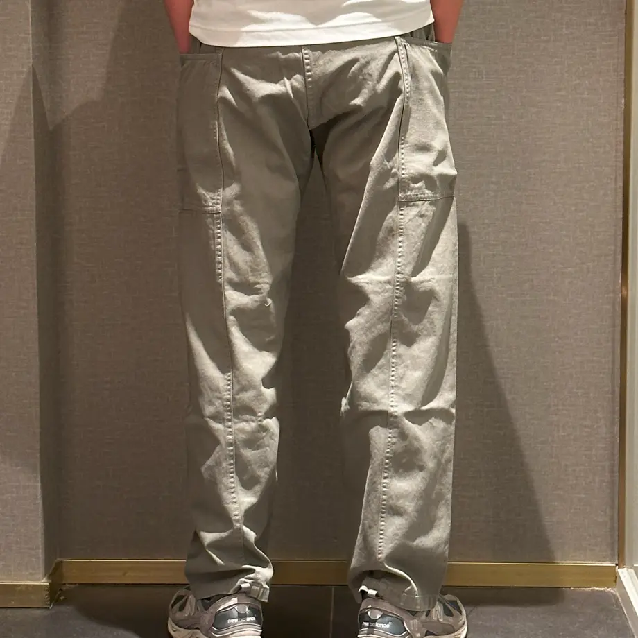 Брюки Gadget сохраняют функциональность, необходимую для альпинизма, и при этом адаптированы к современному образу жизни. Умеренно свободный силуэт подходит как для скалолазания, так и для повседневной городской жизни. Большие карманы, простирающиеся от передней части до задней, обеспечивают достаточно места для хранения различных инструментов. Основная ткань - прочный хлопковый твил, а карманы - из прочного брезента для лучшей поддержки веса. Контраст между двумя материалами дополнительно подчеркивается разной техникой окрашивания. Правый карман декорирован фирменной жаккардовой тесьмой для подвешивания брелоков и других мелких аксессуаров.