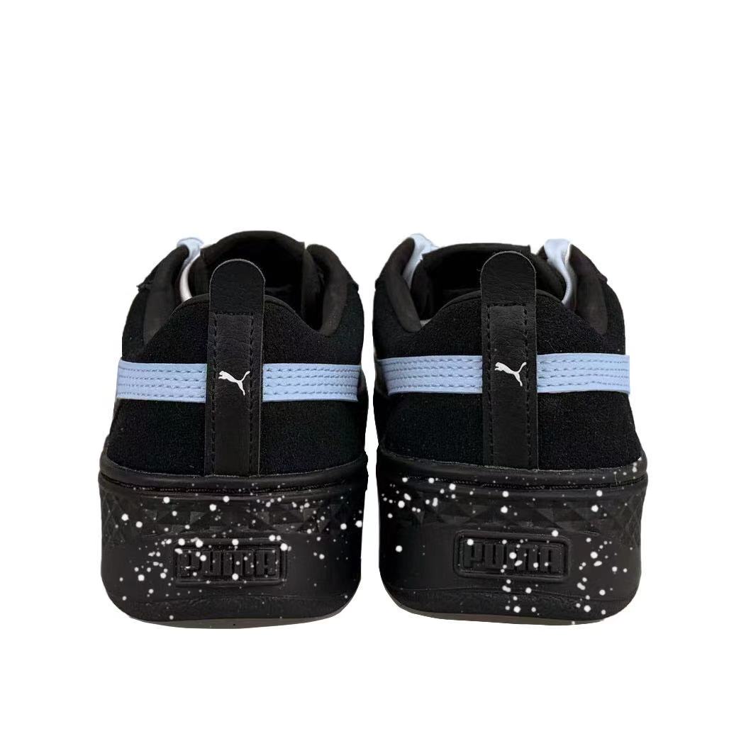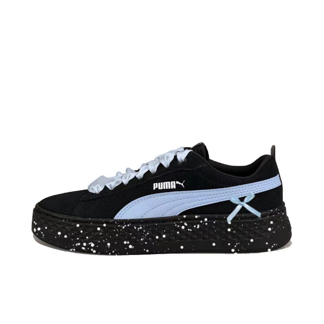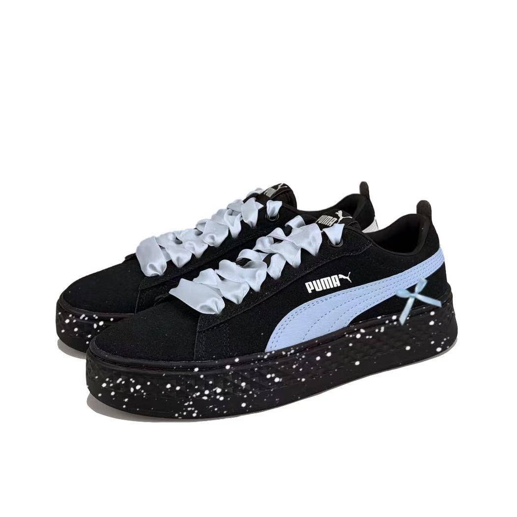 Эти кроссовки созданы на основе оригинальных женских низких кроссовок PUMA Smash Platform Suede в черно-белом цвете. Дизайн вдохновлен балетом.