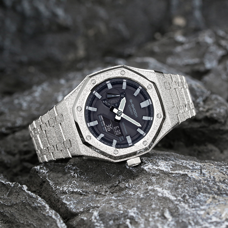 Цвет корпуса: GA-2100-1A Модифицированный фермерский дуб Frost Black Steel Band