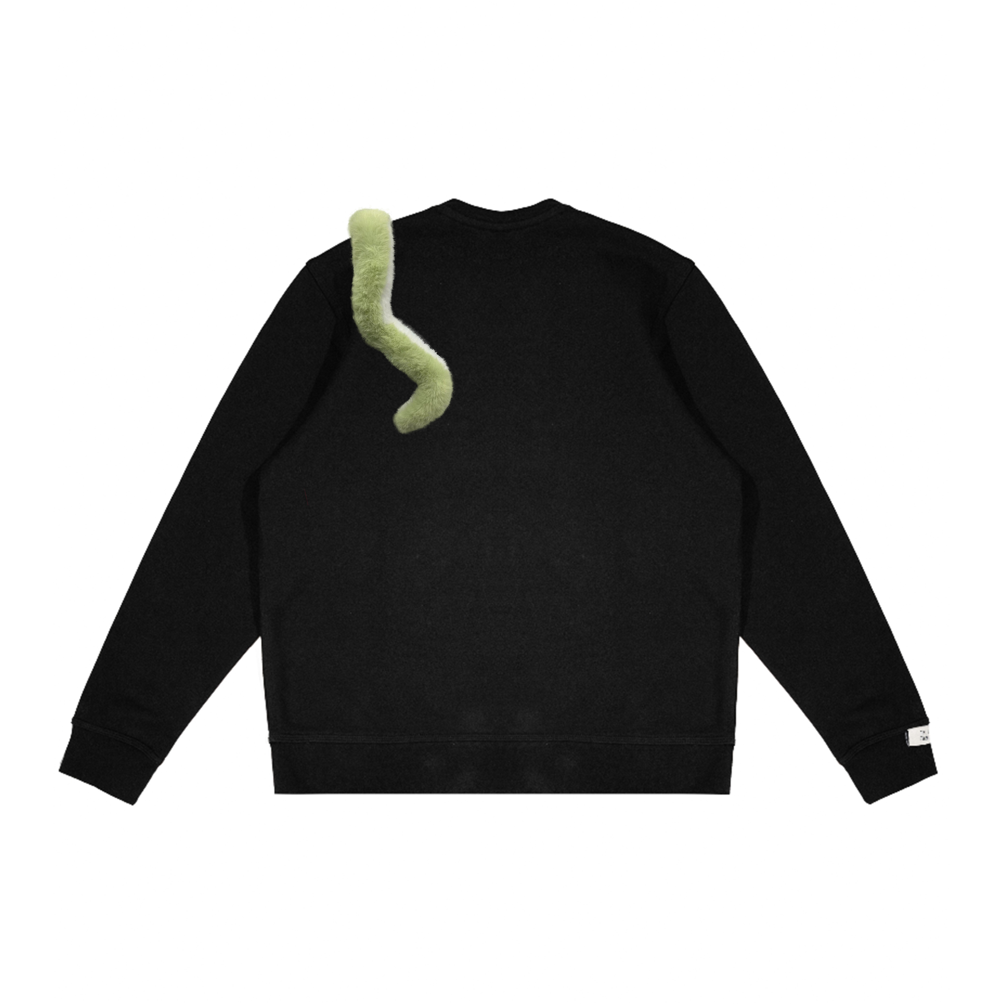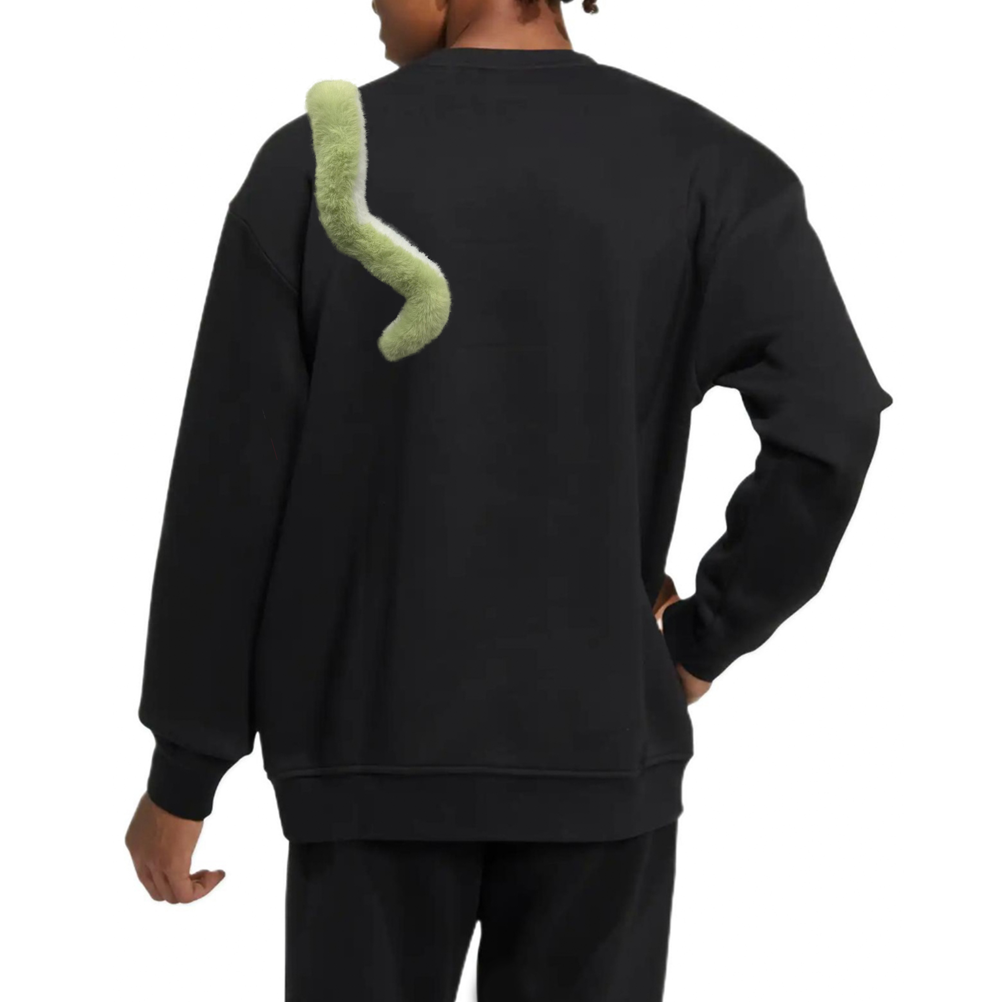 Эта модель, разработанная на заказ, основана на оригинальной черной толстовке с круглым вырезом и длинными рукавами с принтом логотипа adidas (артикул IB2774). Вдохновленная китайским Новым годом, она украшена благоприятными узорами в виде облаков, вдохновленными годом Змеи, с изысканной ручной вышивкой. Регулируемая и съемная плюшевая подвеска в виде змеи делает ее еще более удобной.