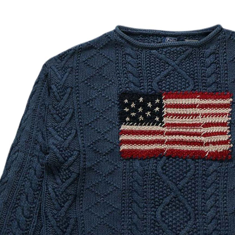 Свитер вязаный с флагом Polo Ralph Lauren, индиго