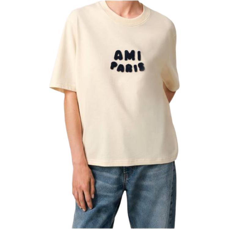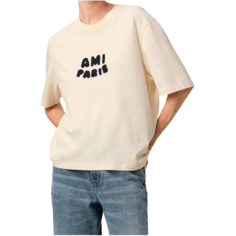 Футболка Ami Paris с логотипом AMIPARIS, кремовый