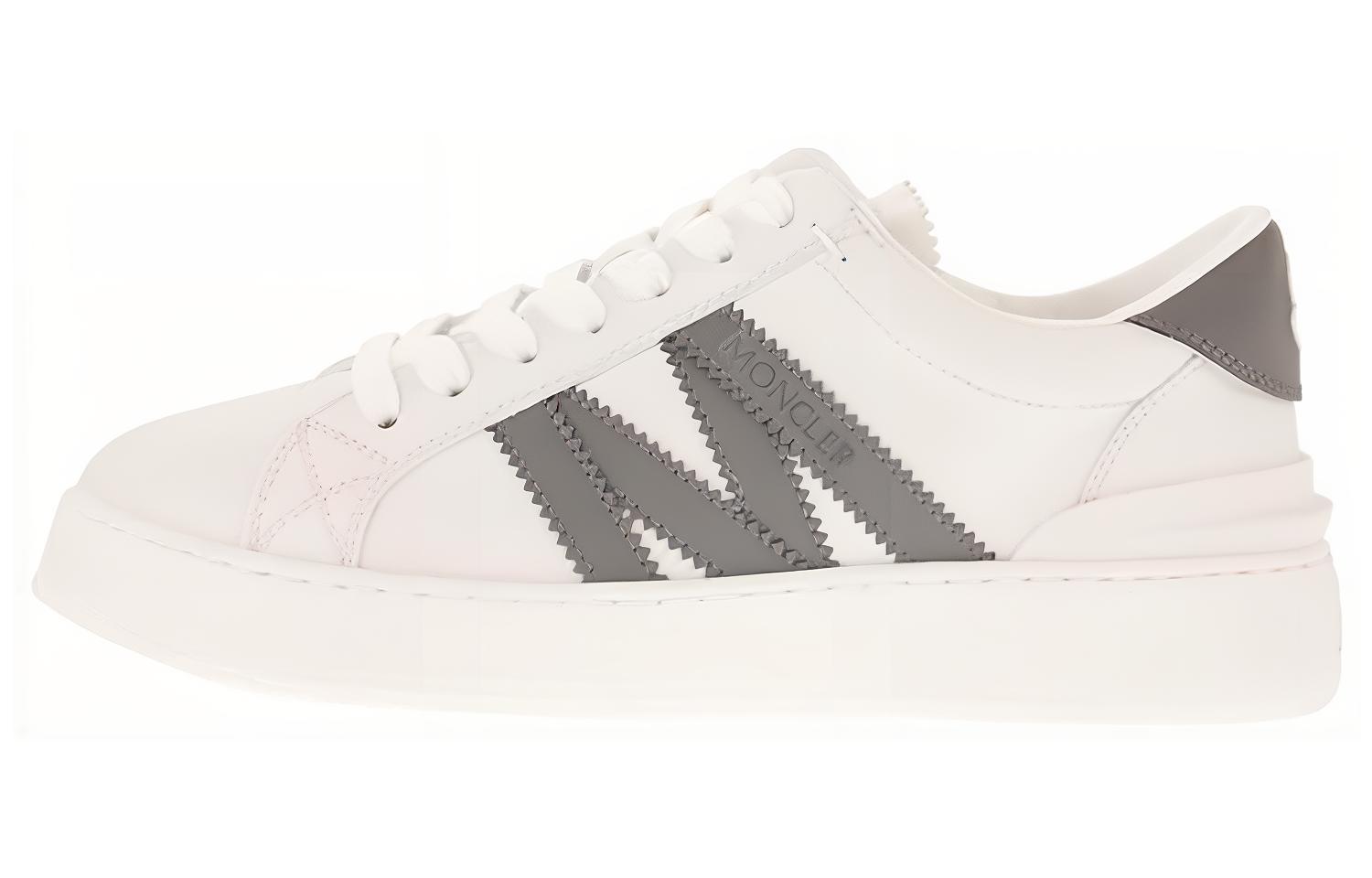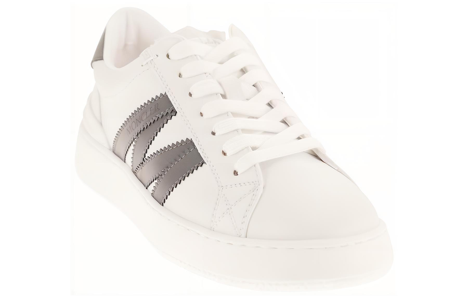 Низкие кожаные кеды Moncler с логотипом, закругленным носком и верхом из белой кожи. Простая цветовая гамма делает их повседневными и универсальными.