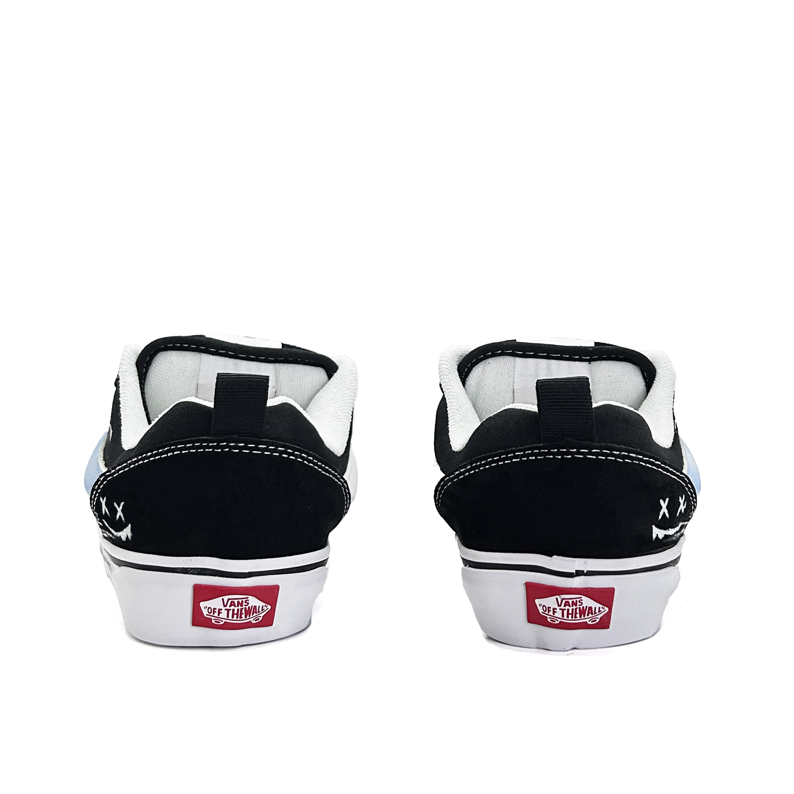 Эти кастомные кроссовки созданы на основе оригинальной черно-белой модели Vans Knu Skool (артикул VNO009QC6BT1) с дополнительным артикулом VNO009QC6BT. Принт на кроссовках отличается ярко выраженными художественными чертами граффити, выходя за рамки традиционных цветов и узоров. Благодаря разнообразию цветовых сочетаний и использованию техник, характерных для уличного искусства, таких как набрызгивание и аэрозольная окраска, каждая пара кроссовок подобна уникальному произведению искусства, удовлетворяя потребность ценителей модных тенденций в персонализированных и художественных изделиях, а также отражая давнюю ДНК бренда Vans, основанную на сотрудничестве с миром искусства.