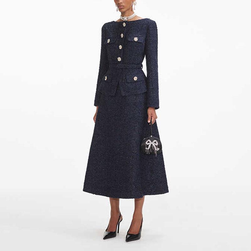 Вязаное платье миди с баской Self-portrait, синий 67 477₽