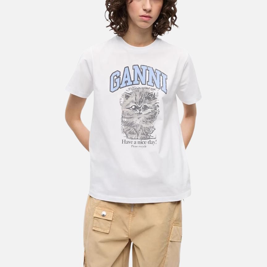 Футболка Kitty Printed Crewneck GANNI, ярко-белый