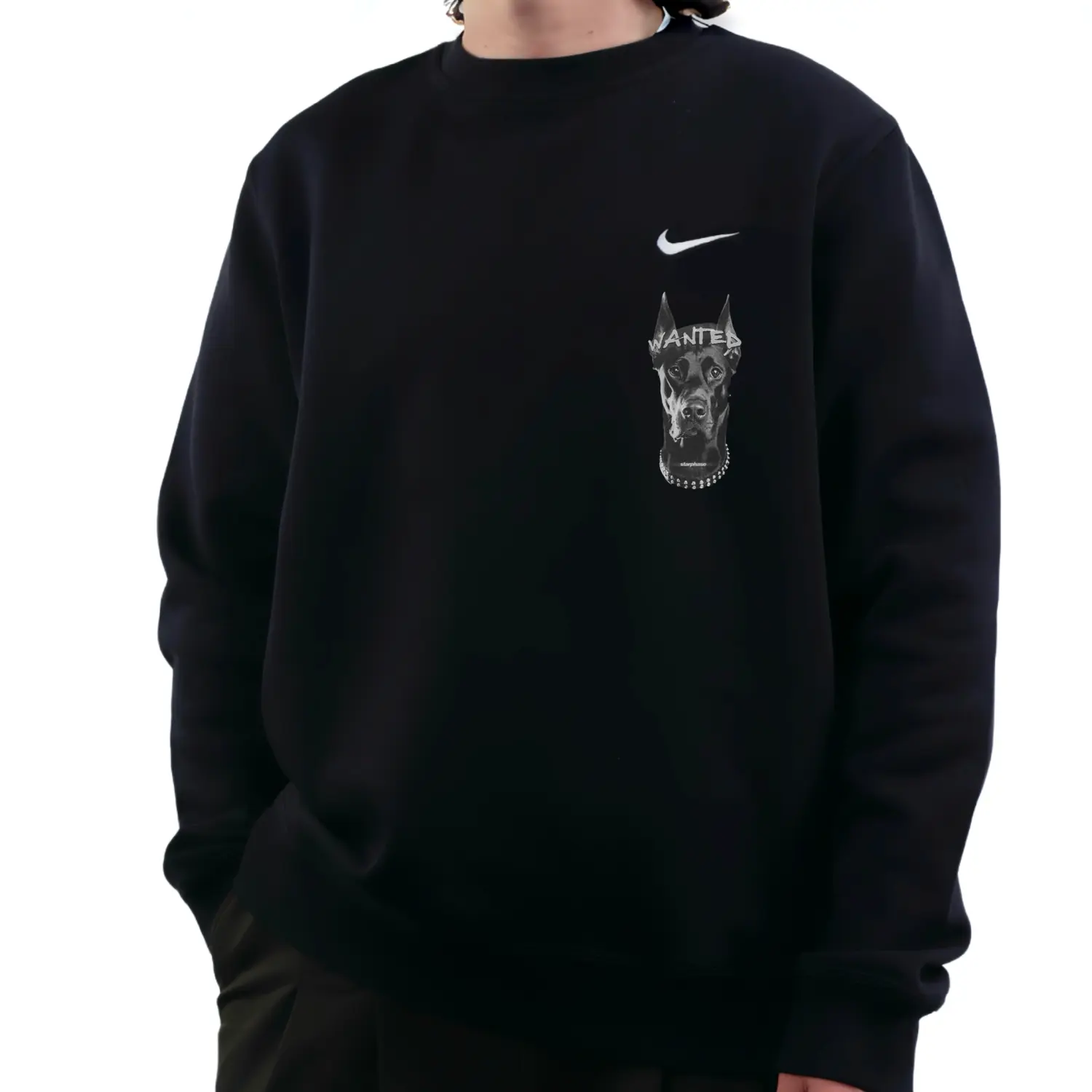 Этот индивидуальный пошив выполнен на основе оригинальной мужской толстовки с круглым вырезом и длинным рукавом с принтом логотипа Nike, черного цвета. Оригинальный фасон будет отправлен случайным образом. Все узоры на этом индивидуальном пошиве наносятся вручную на каждое изделие; расположение узоров может незначительно отличаться. В связи с особенностями изготовления и материалов, пожалуйста, избегайте контакта с острыми предметами, длительного замачивания и сушки при высоких температурах.