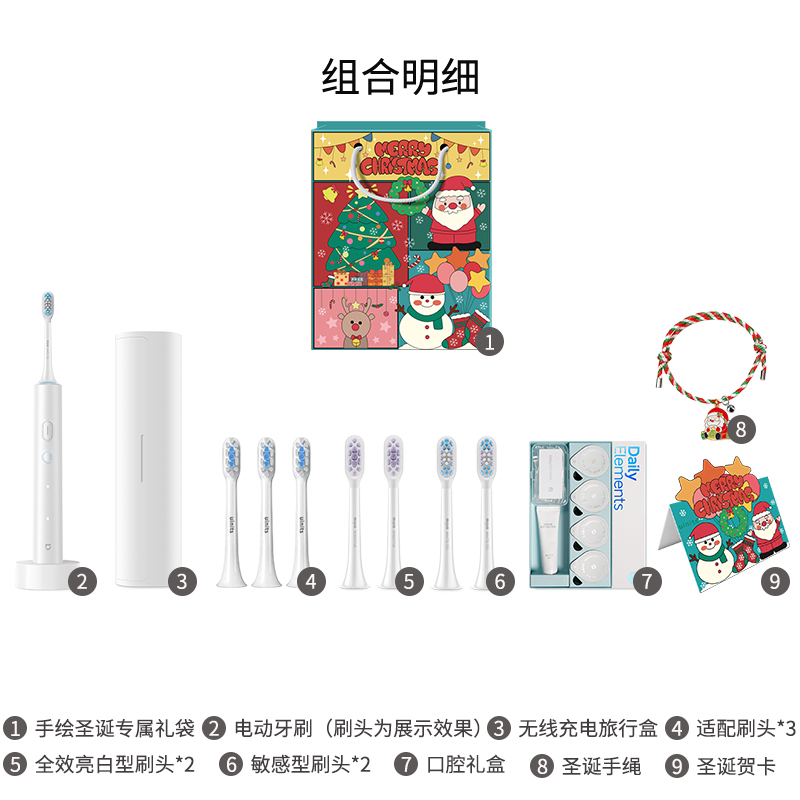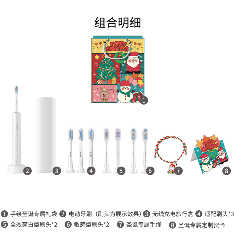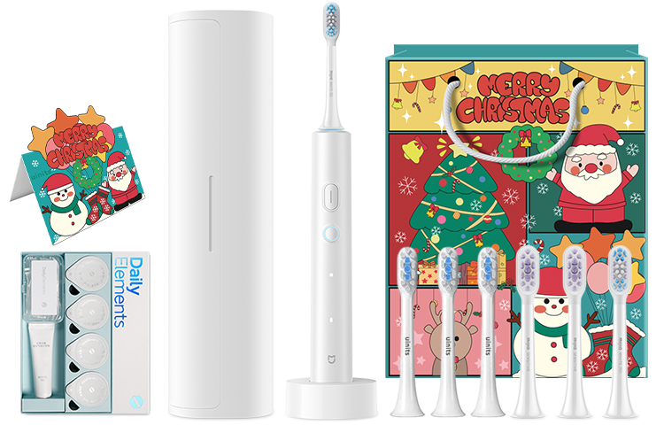 Комплект: Белый (включая браслет, шесть насадок для чистки зубов, подарочную коробку для полости рта), праздничная упаковка
