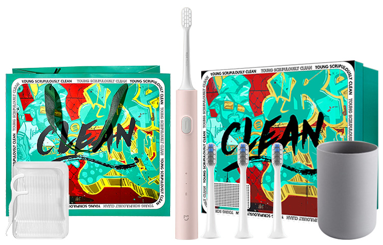 Модель: T200 розовый + зубная нить + стаканчик для полоскания рта + лимитированная подарочная коробка + адаптивная насадка *3