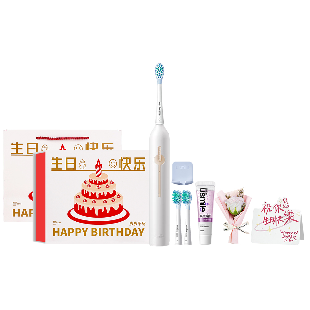 Набор: P1 Crescent White + зубные пасты + букет + коробка с надписью «С днем ​​рождения»