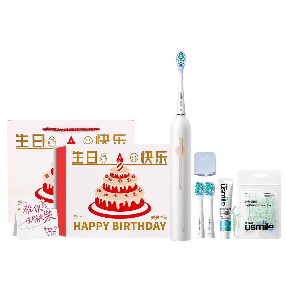 Набор: P1 Crescent White + зубные пасты + зубная нить + подарочная коробка «С днем ​​рождения»