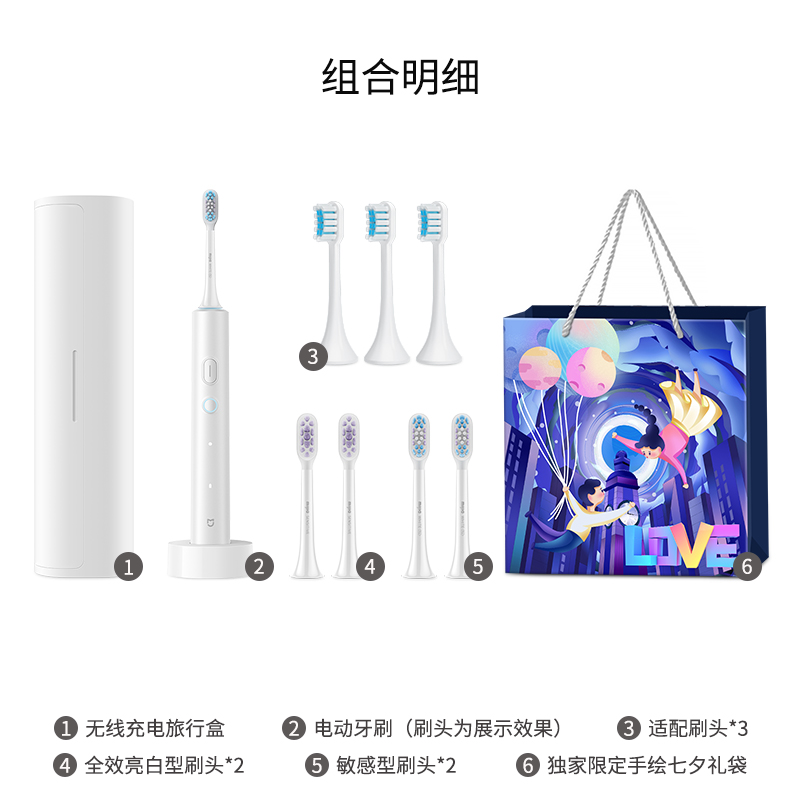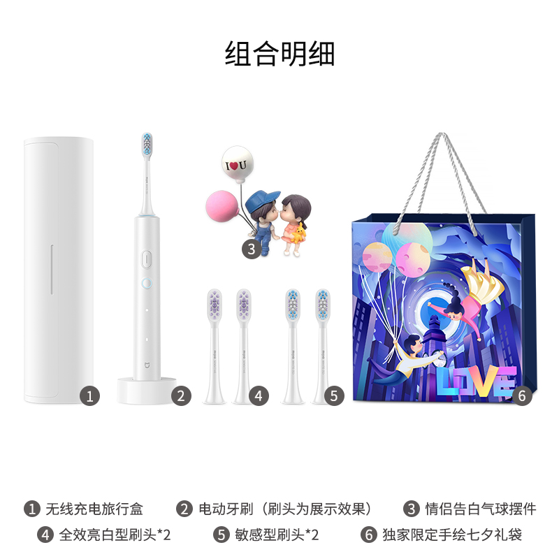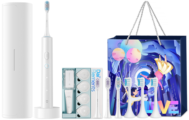 Набор: Белый (включая четыре насадки для зубной щетки), содержит воздушный шар для признания в любви + подарочный пакет Танабата