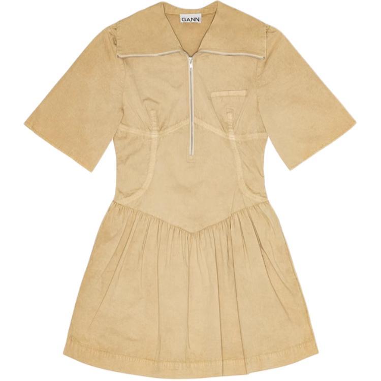 Стираное стрейч-хлопковое мини-платье GANNI, хаки