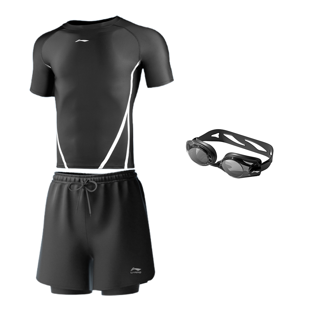 Комплекты одежды: комплект из трех предметов с шапочкой для плавания (купальник + шорты для плавания средней длины + черная шапочка для плавания)