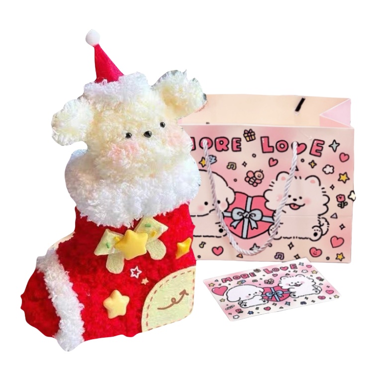 Название продукта: Красный рождественский носок «Щенок» (комплект материалов для самостоятельной работы) + инструкция + пакет «Счастливых покупок» + поздравительная открытка