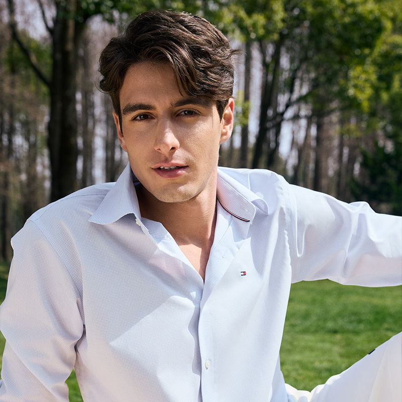 Tommy Hilfiger Рубашка мужская синяя белая клетка