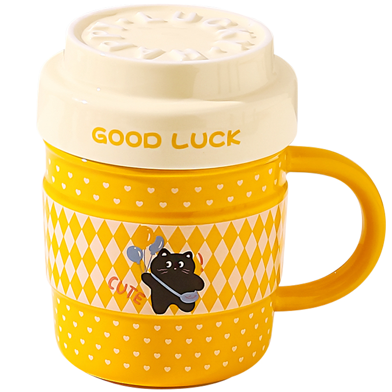 Цвет: Милая кружка с черным котом и крышкой (желтое сердце)