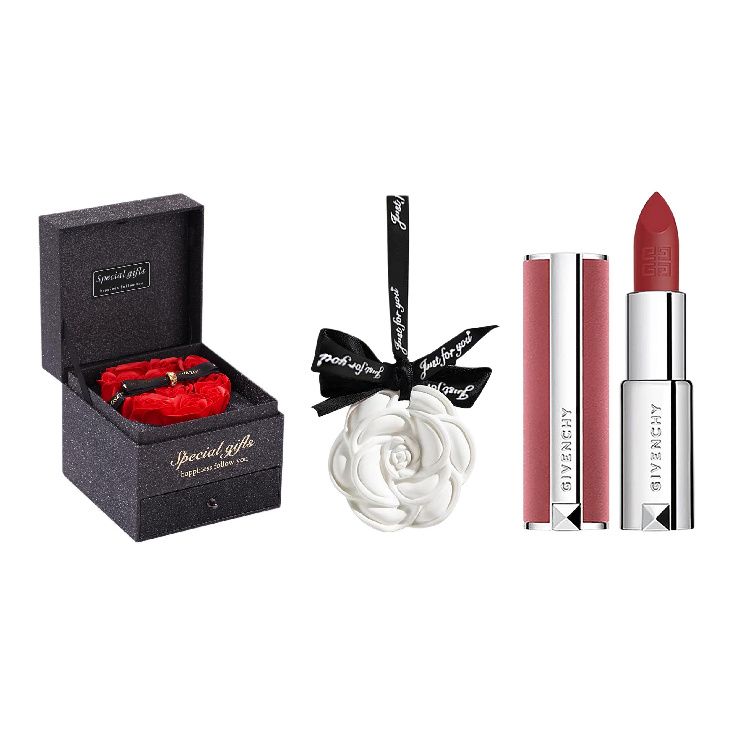 Вес нетто: Givenchy, Fanvel N27 Snow Peach 3,4 г + аромадиффузор Camellia + коробка с розами