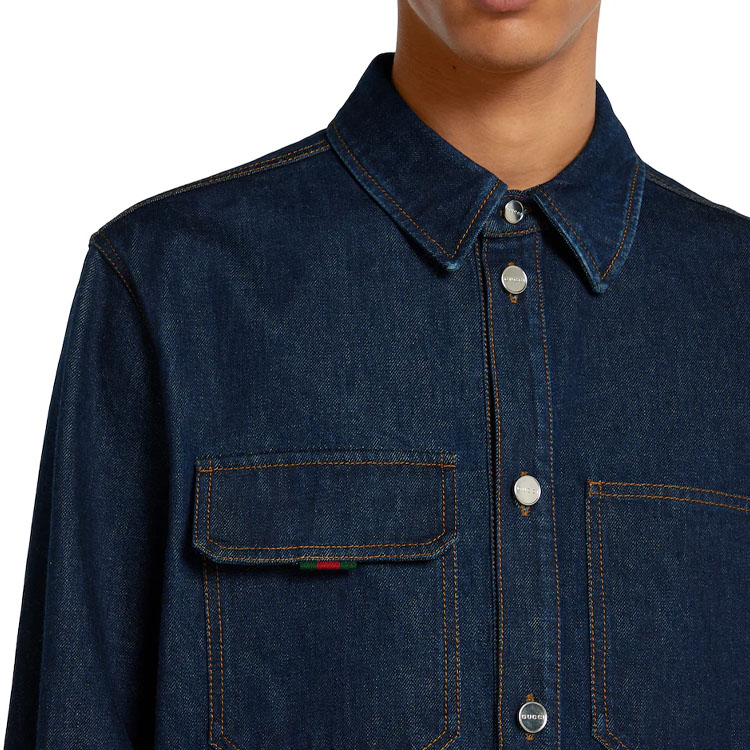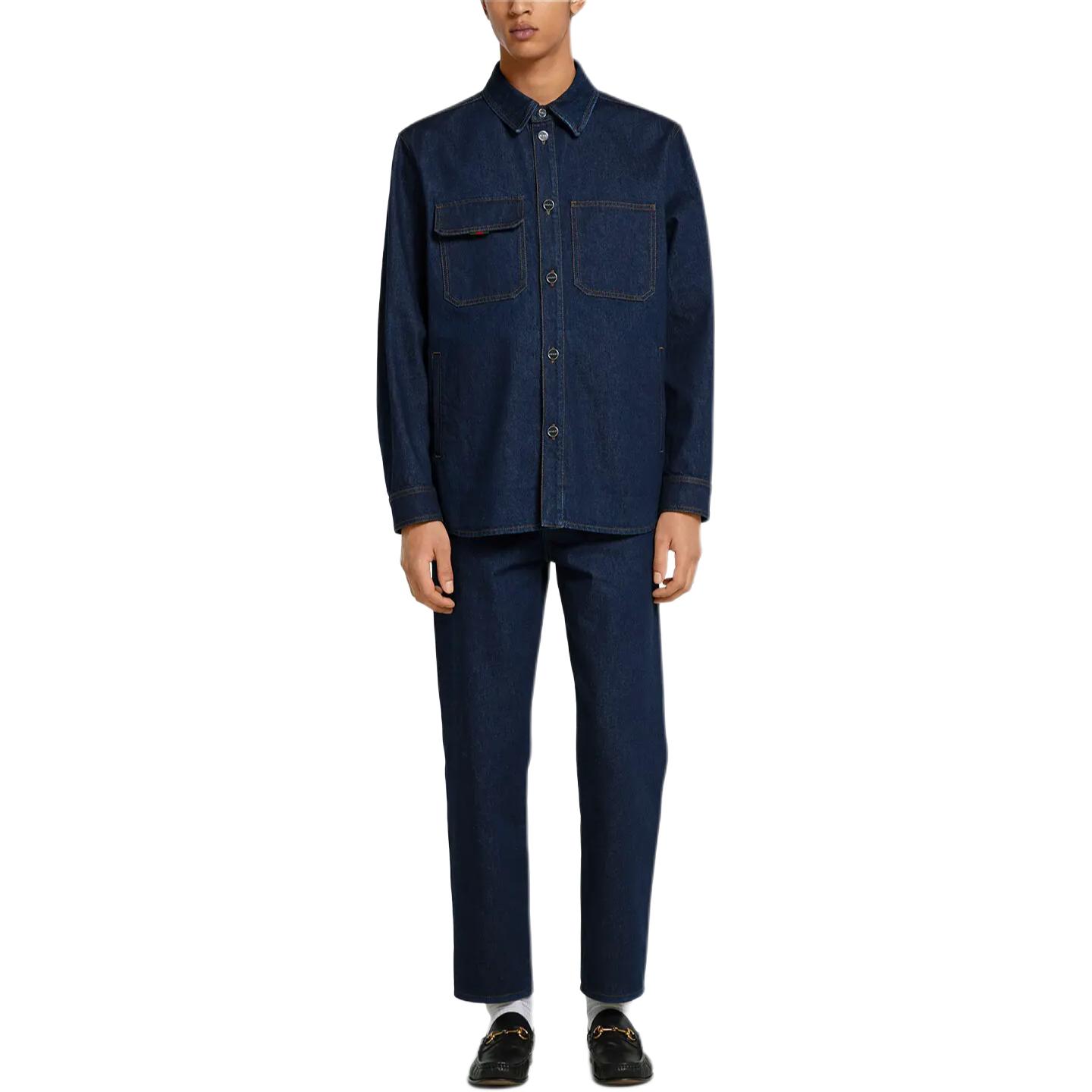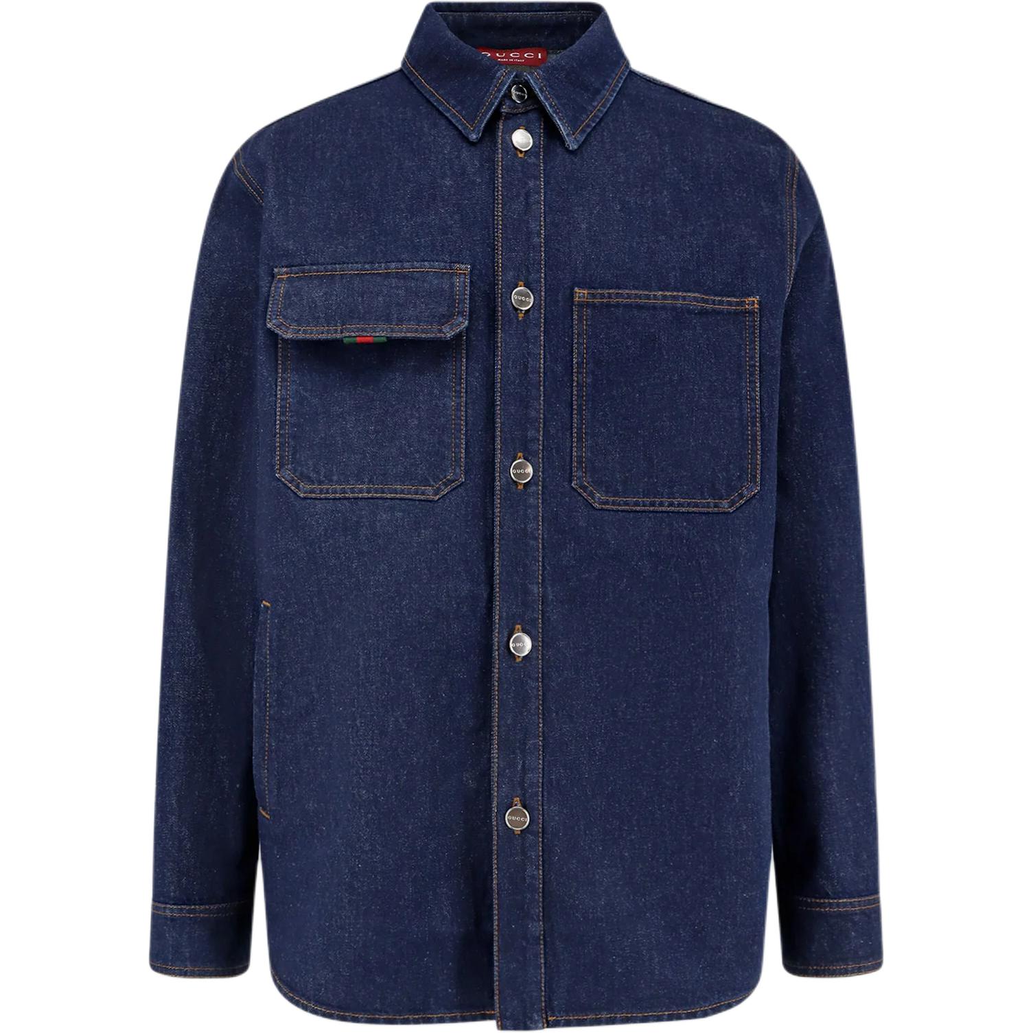 Расслабленная джимовая рубашка GUCCI, темно-синий