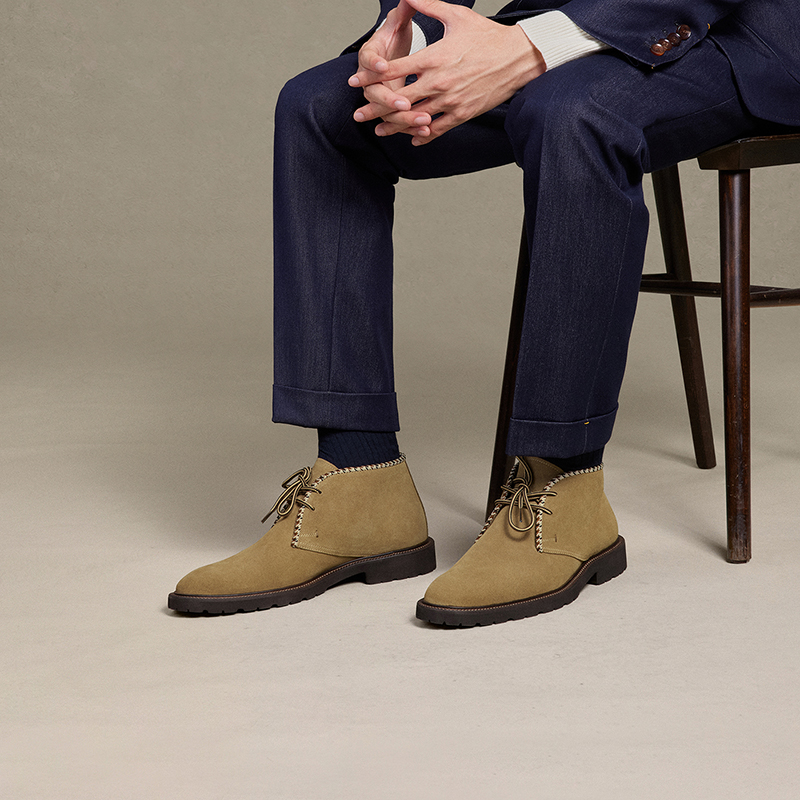 Премиальная замша из коровьей кожи (с более тонкой, равномерно окрашенной текстурой, создающей элегантный и простой стиль; умеренная толщина и мягкая текстура для комфорта при ношении). Подкладка из коровьей кожи, окрашенной в воде (внутренняя подкладка обернута в коровью кожу и обработана методом окрашивания в воде, что обеспечивает мягкую текстуру, мелкие поры, отличное впитывание пота и воздухопроницаемость, сохраняя ноги в прохладе даже при длительной носке). Итальянская подошва XLEXTRALIGHT (подошва XL EXTRALIGHT из пеноматериала разработана и производится известным итальянским производителем FINPROJECT; ее низкоплотная структура с закрытыми ячейками обеспечивает ощущение «мягкого контакта», весит всего треть от веса обычной подошвы, что делает ее более легкой, удобной, эластичной, амортизирующей, износостойкой и нескользящей).