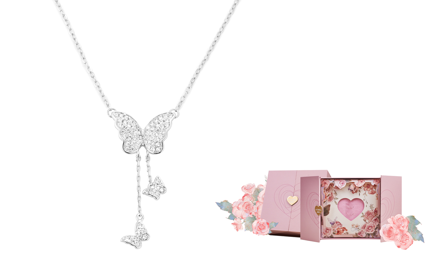 Цвет: колье с белыми бриллиантами и кисточками + подарочная коробка с розой-признанием