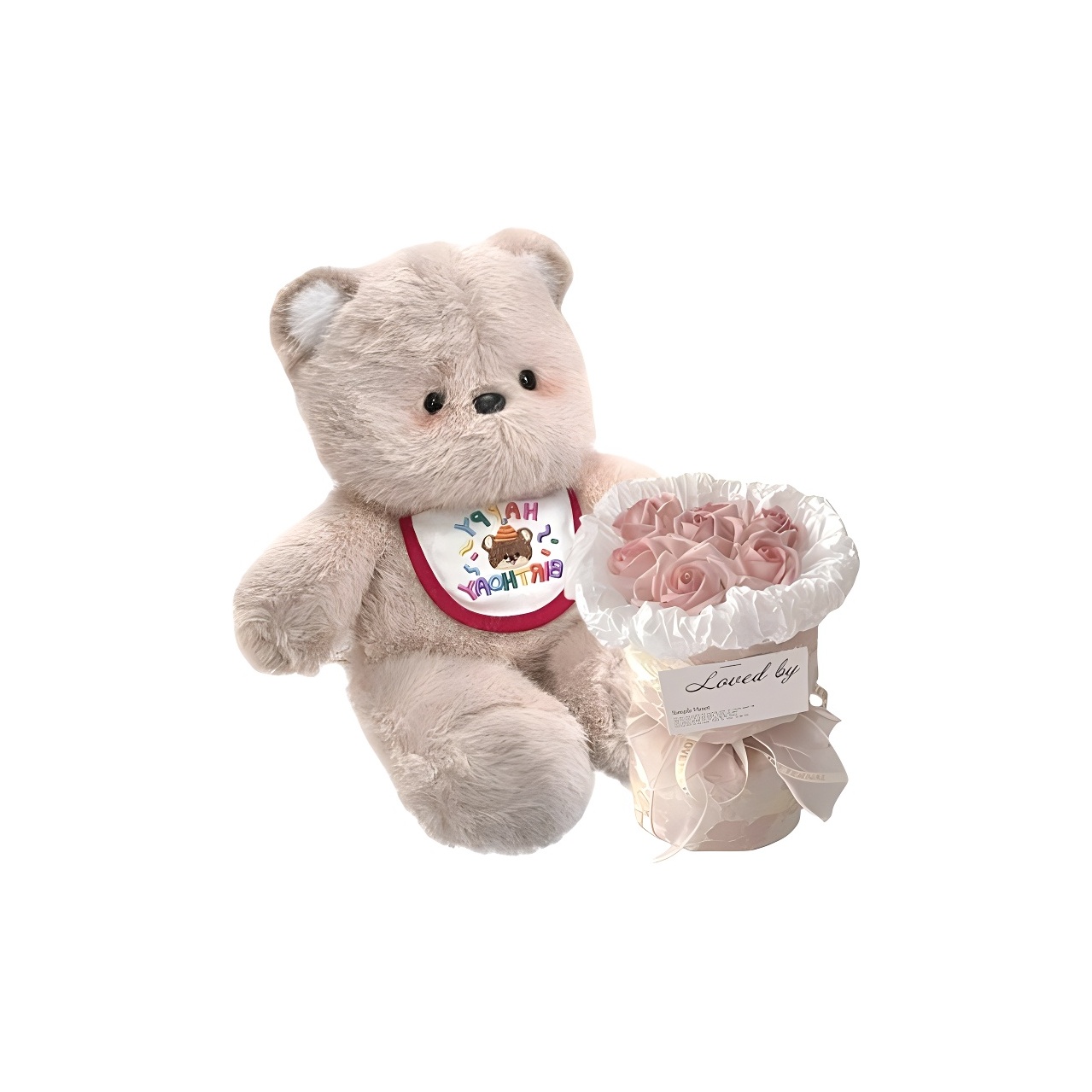 Название продукта: Бегущий медведь + праздничный нагрудник + букет