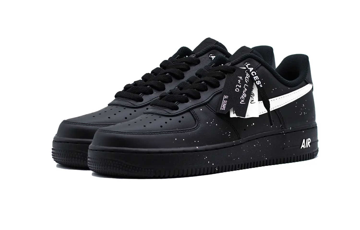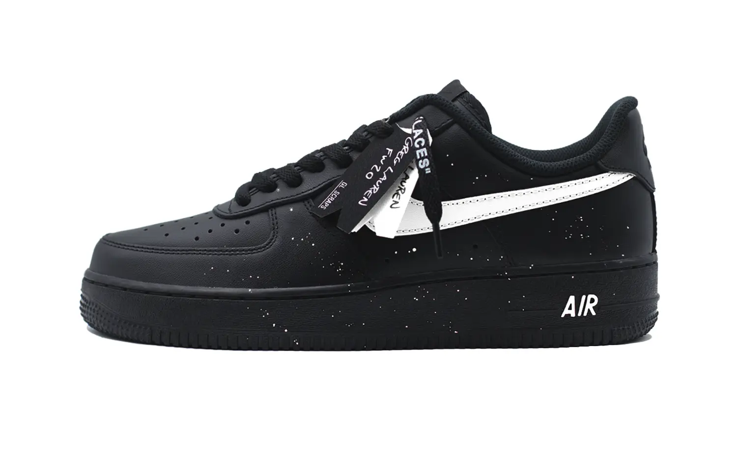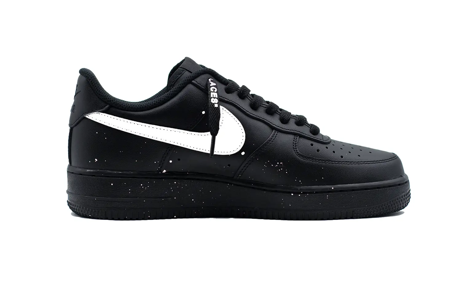 Фирменные кроссовки изготовлены на основе оригинальных классических ретро-кроссовок Nike Air Force 1 черного цвета.