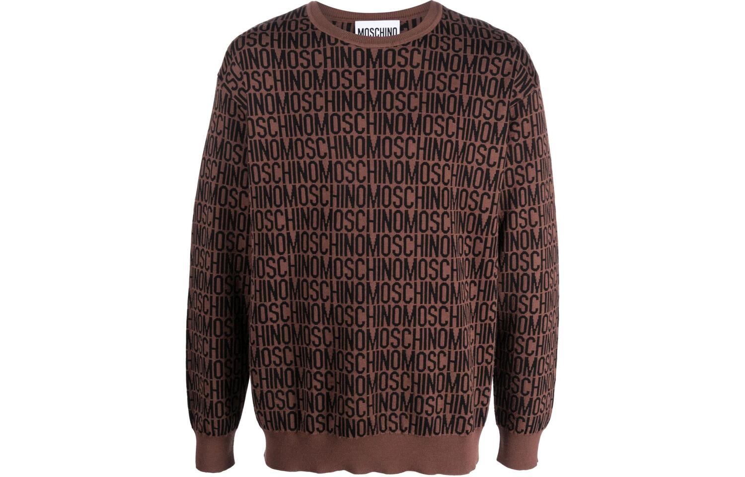 Свитер с интарсией логотипа MOSCHINO, коричневый