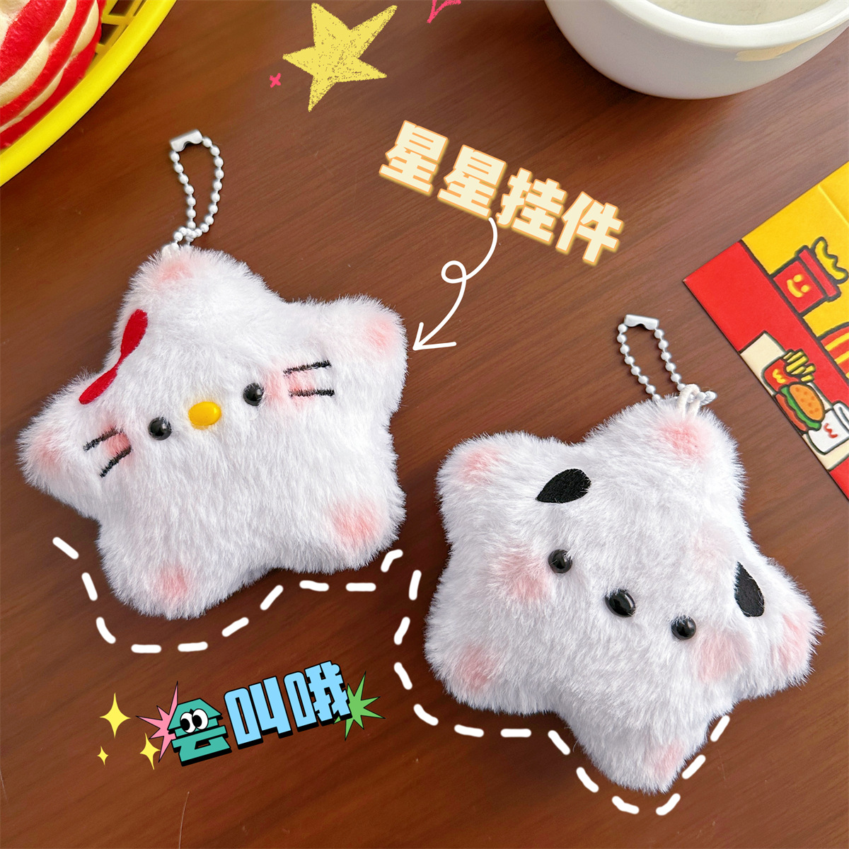 Подвеска плюшевая с котами и звездами 9 см BUDUO 992₽