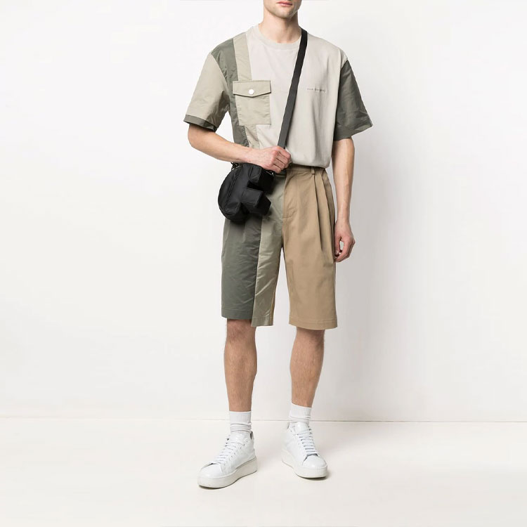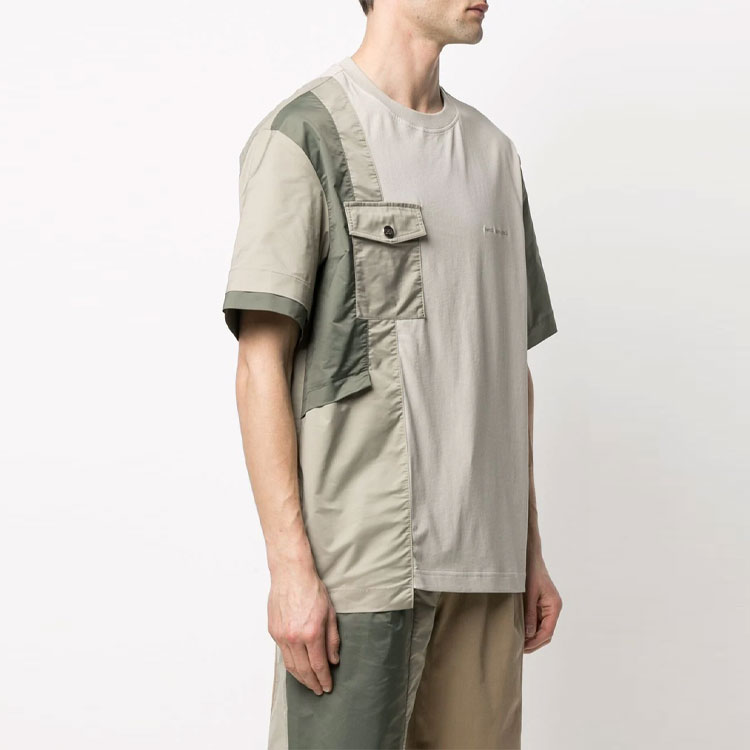 Colour block Cotton T shirt Feng Chen Wang, хаки