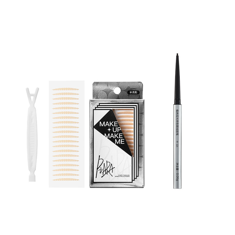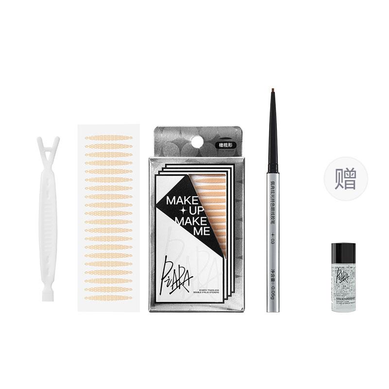 Комплекты одежды: 02# Мокко Коричневый Гелевая ручка для подводки глаз + Двойной патч для век в форме полумесяца, в комплекте средство для снятия макияжа с глаз и губ