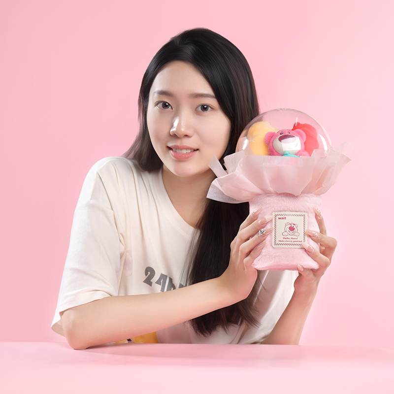Название продукта: Клубничный мишка, обнимающий букет + бархатная кукла Stitch 30 см