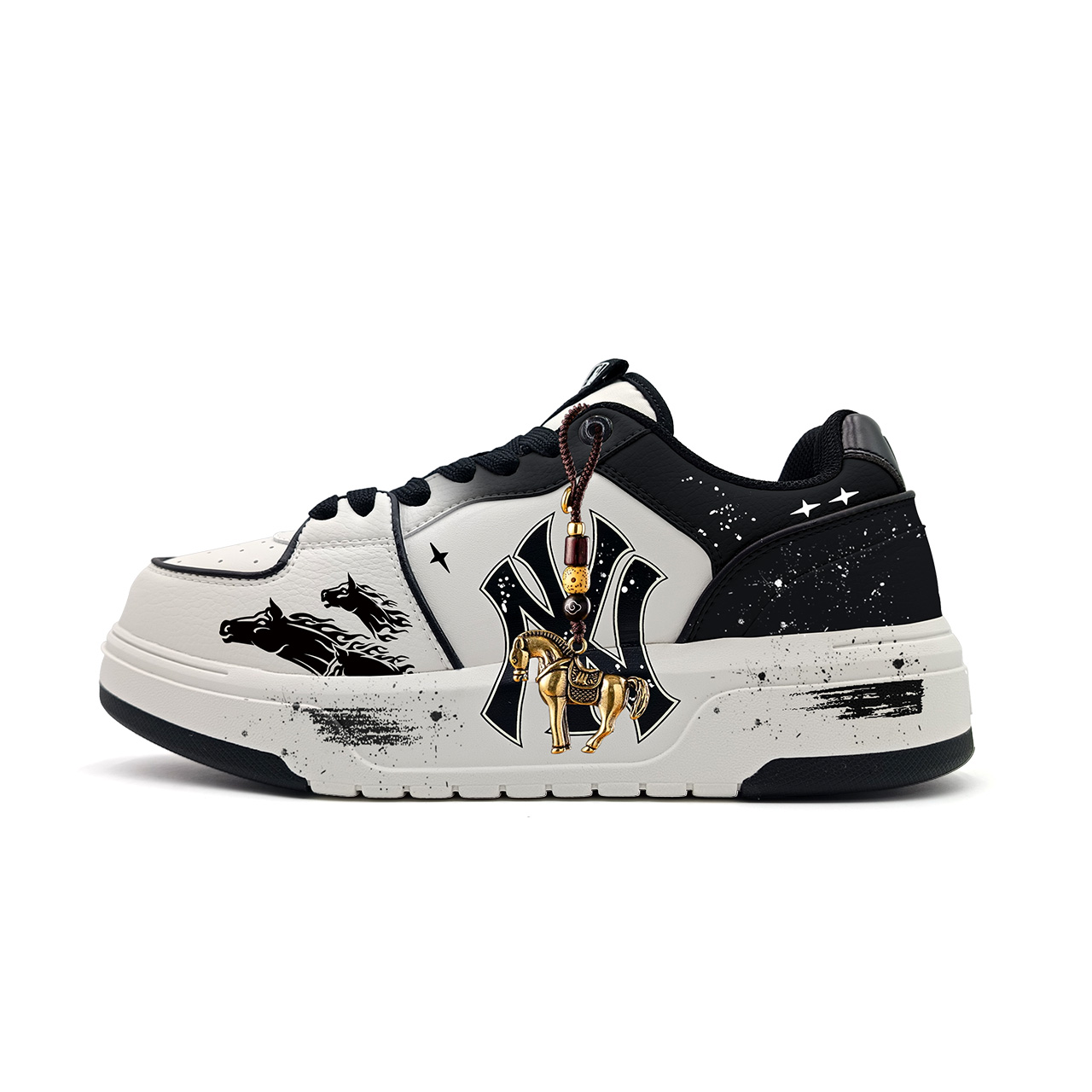 Эти кроссовки созданы на основе оригинальных белых кроссовок унисекс MLB Chunky Liner PU с низким верхом, отличающихся уникальным шармом и свободой движений. Артикул - 3ASXCA12N-50WHS, а дизайн вдохновлен лошадью, прыгающей через звезды.