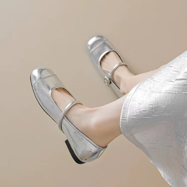 Туфли на блочном каблуке Mary Jane Medd, серебро