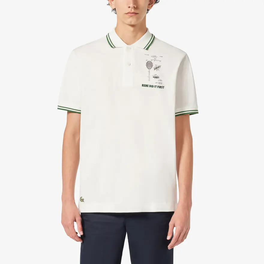 Хлопковая поло с вышитым слоганом LACOSTE, белый