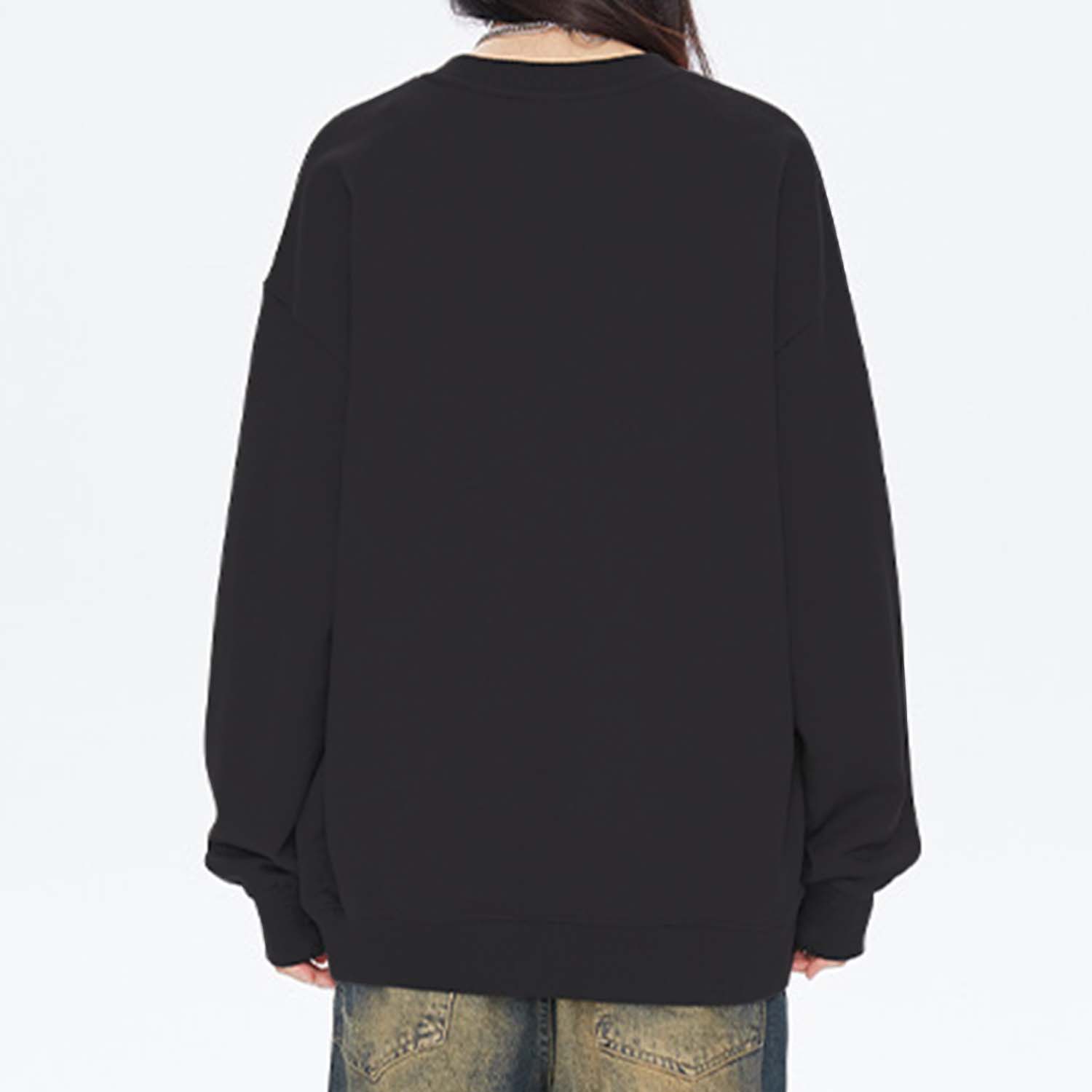 Американский ретро-минималистичный стиль, милый брендовый логотип с буквенным принтом и мультяшным рисунком, свободный, плотный, повседневный, универсальный, с заниженной линией плеч, круглый вырез, свитшот с длинными рукавами, женская толстовка