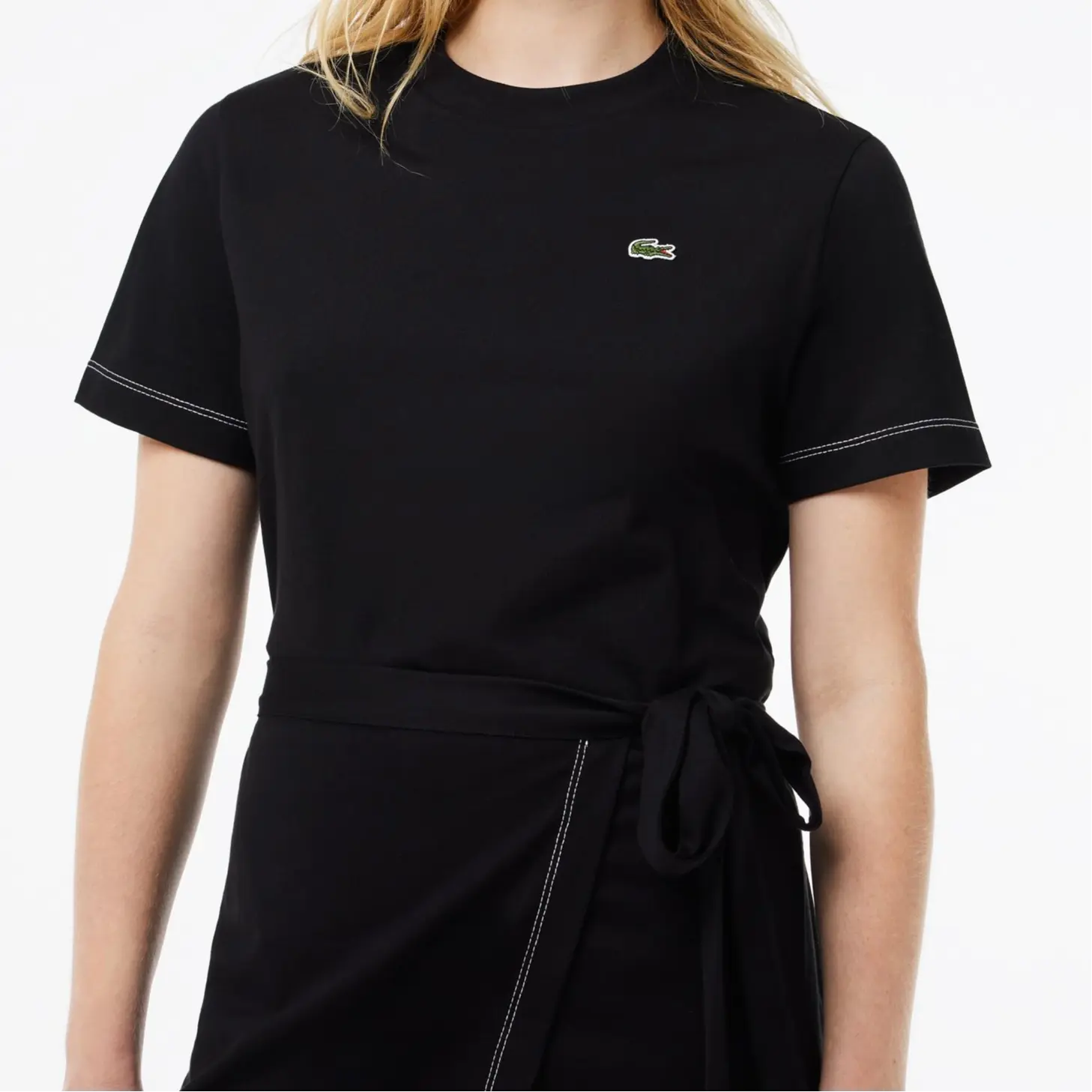LACOSTE Женское черное платье с коротким рукавом