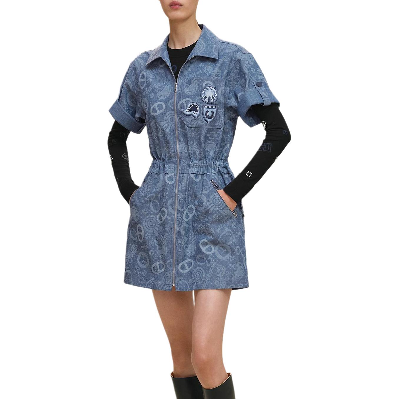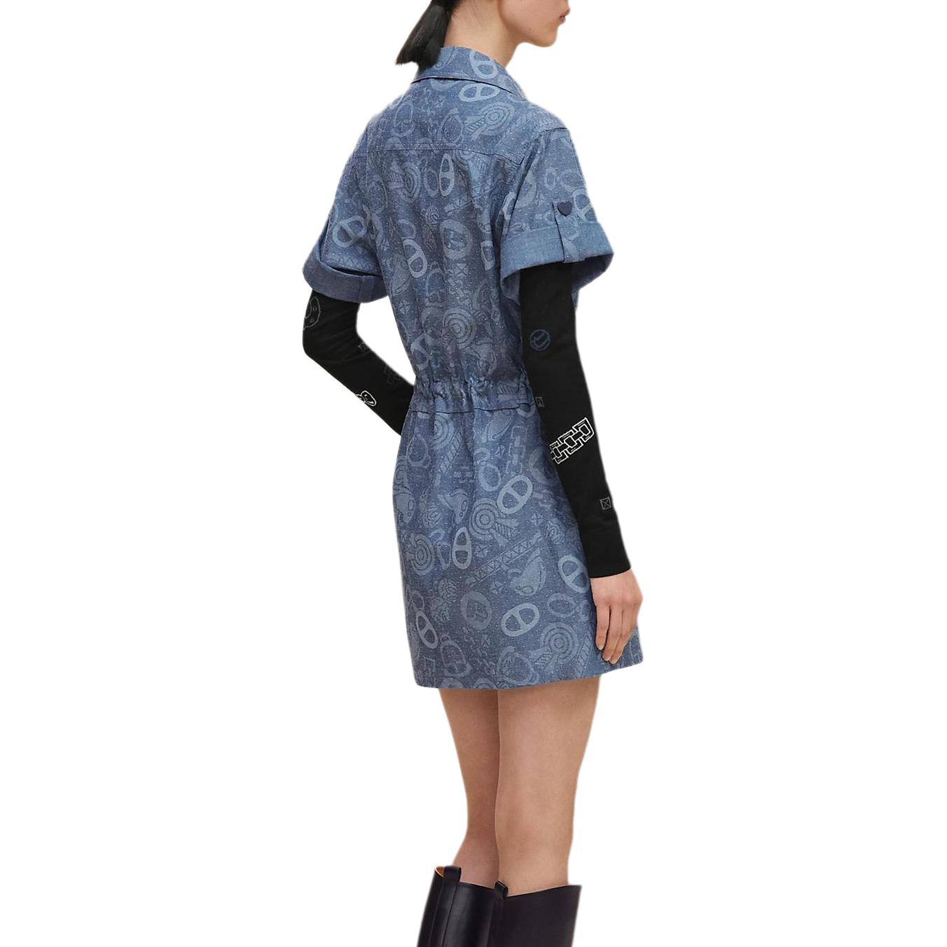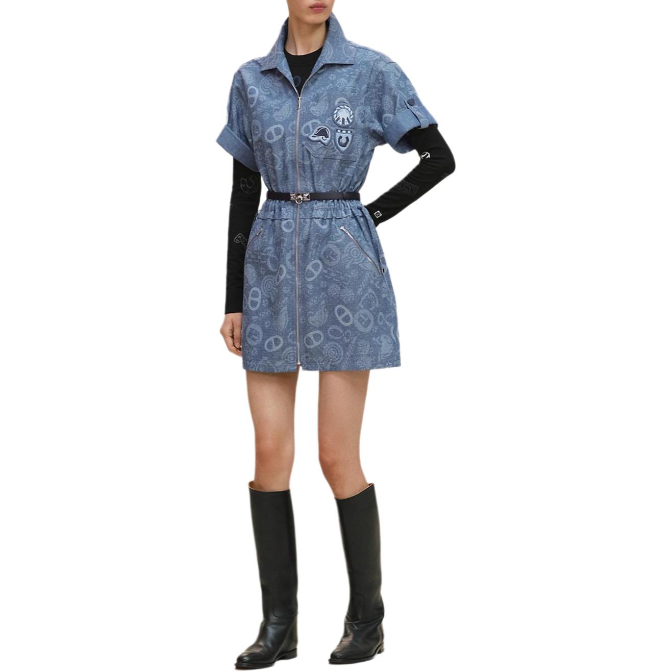 HERMES Женское синее платье с короткими рукавами