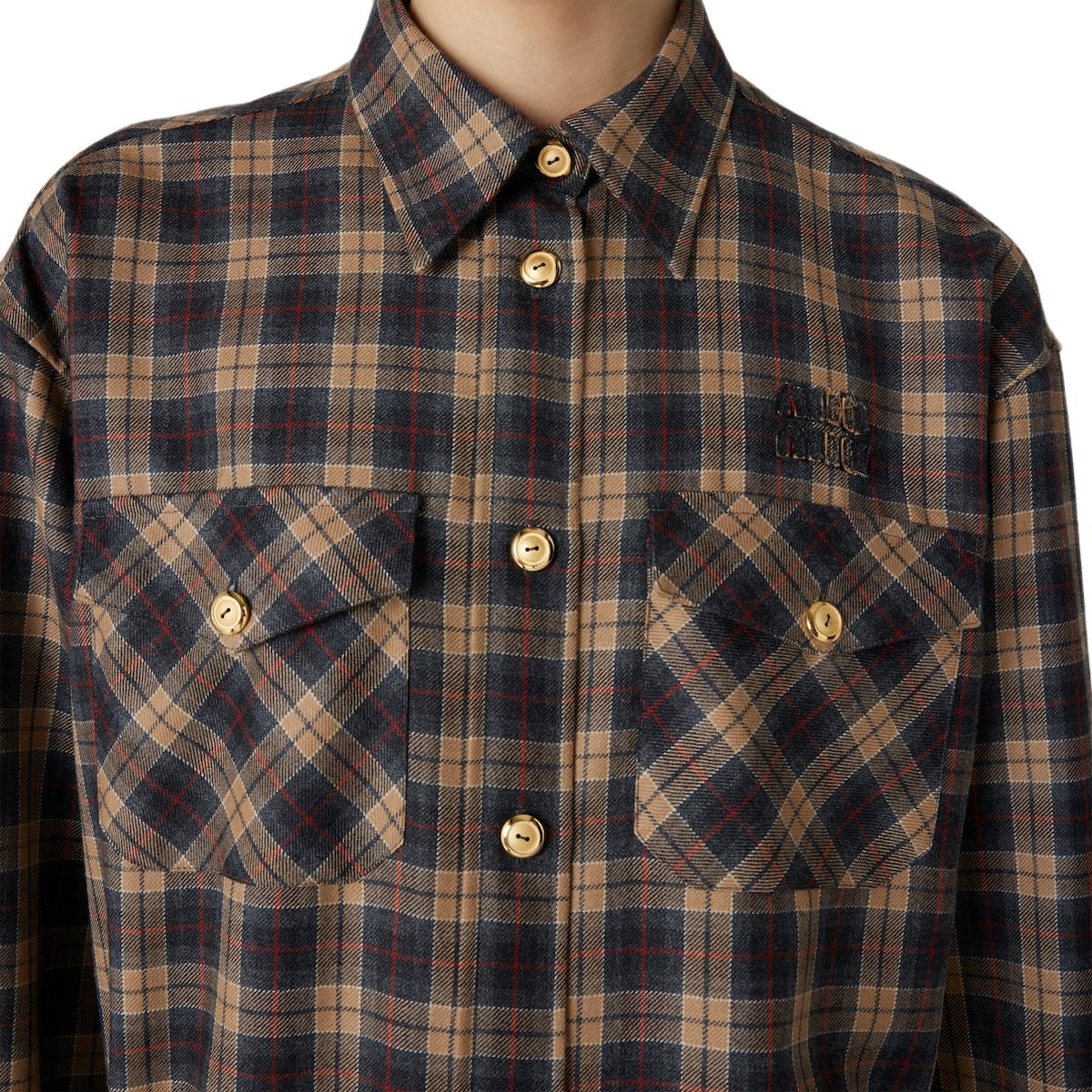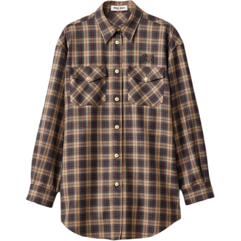 Тартановая шерстяная рубашка MIU MIU, коричневый