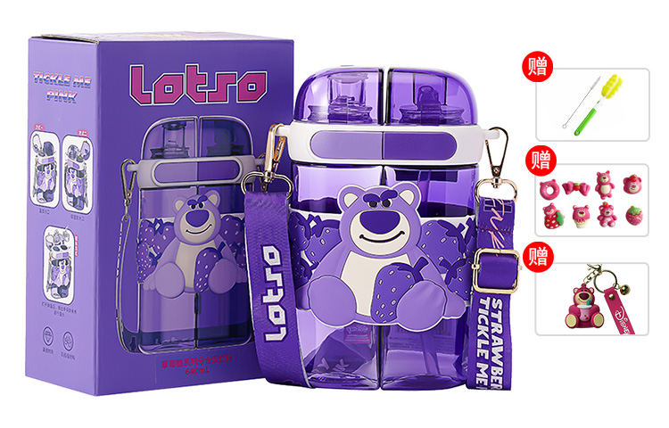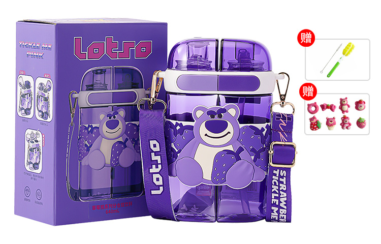 Цвет: Фиолетовый клубничный медведь (в комплекте щетка для чистки чашки + щетка для трубочки + 3D-наклейки *8 + брелок)