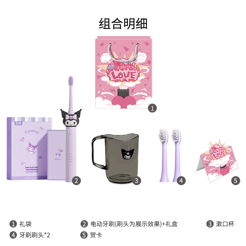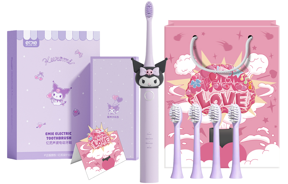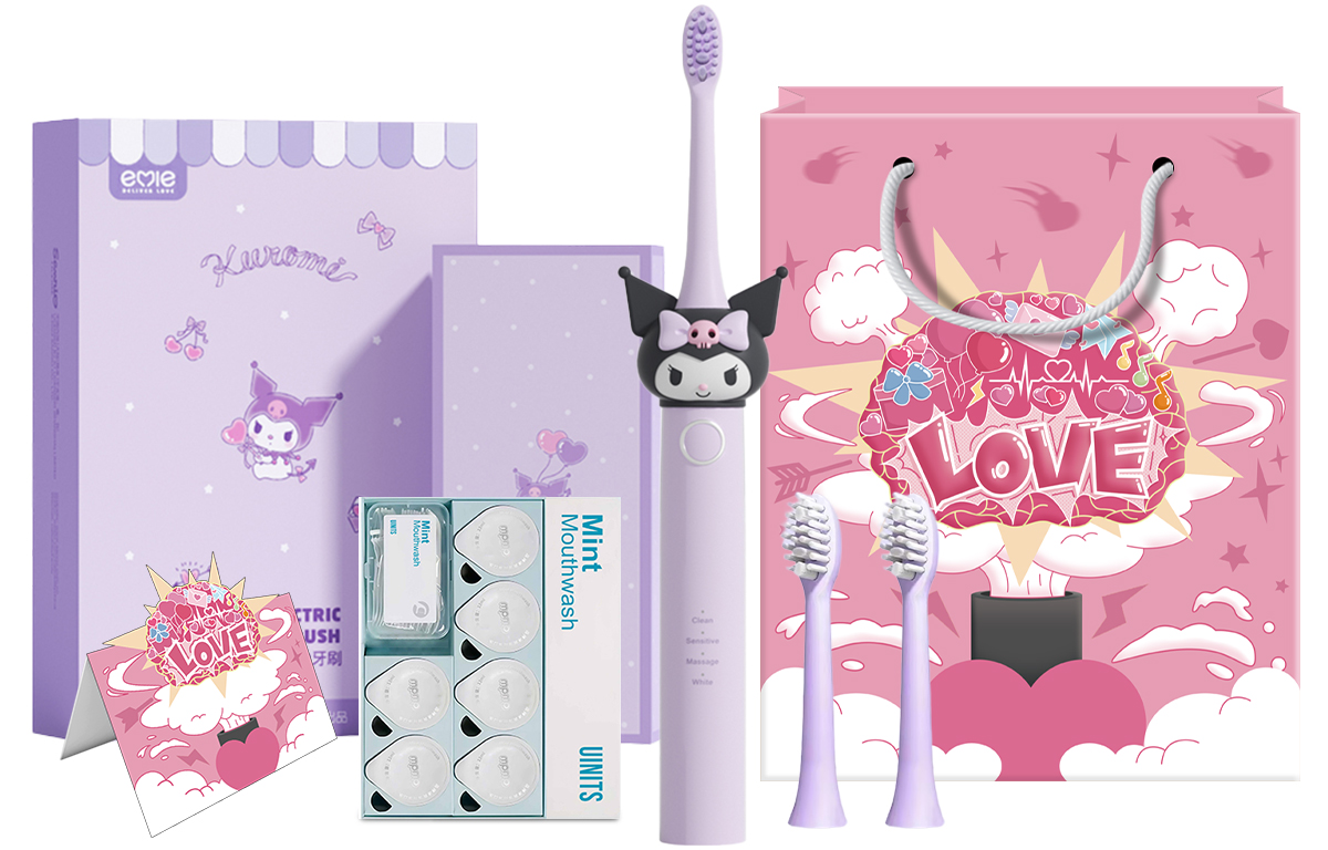 Набор: S300 фиолетовый + насадка для зубной щетки*2 + подарочный пакет куломи + наклейка + подарочная коробка для полости рта