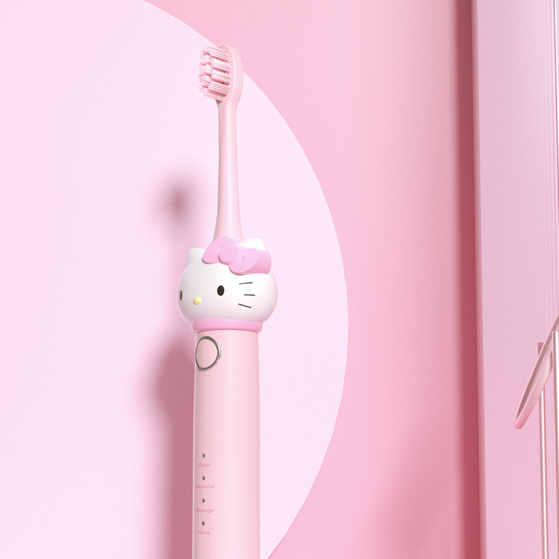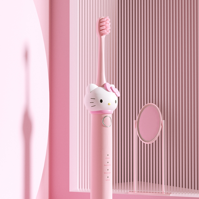 Набор: зубная щетка EMIE розовая + подарочная коробка Daily Element Care + насадки в комплекте*6 + наклейка + подарочный пакет с изображением большой ушастого пса