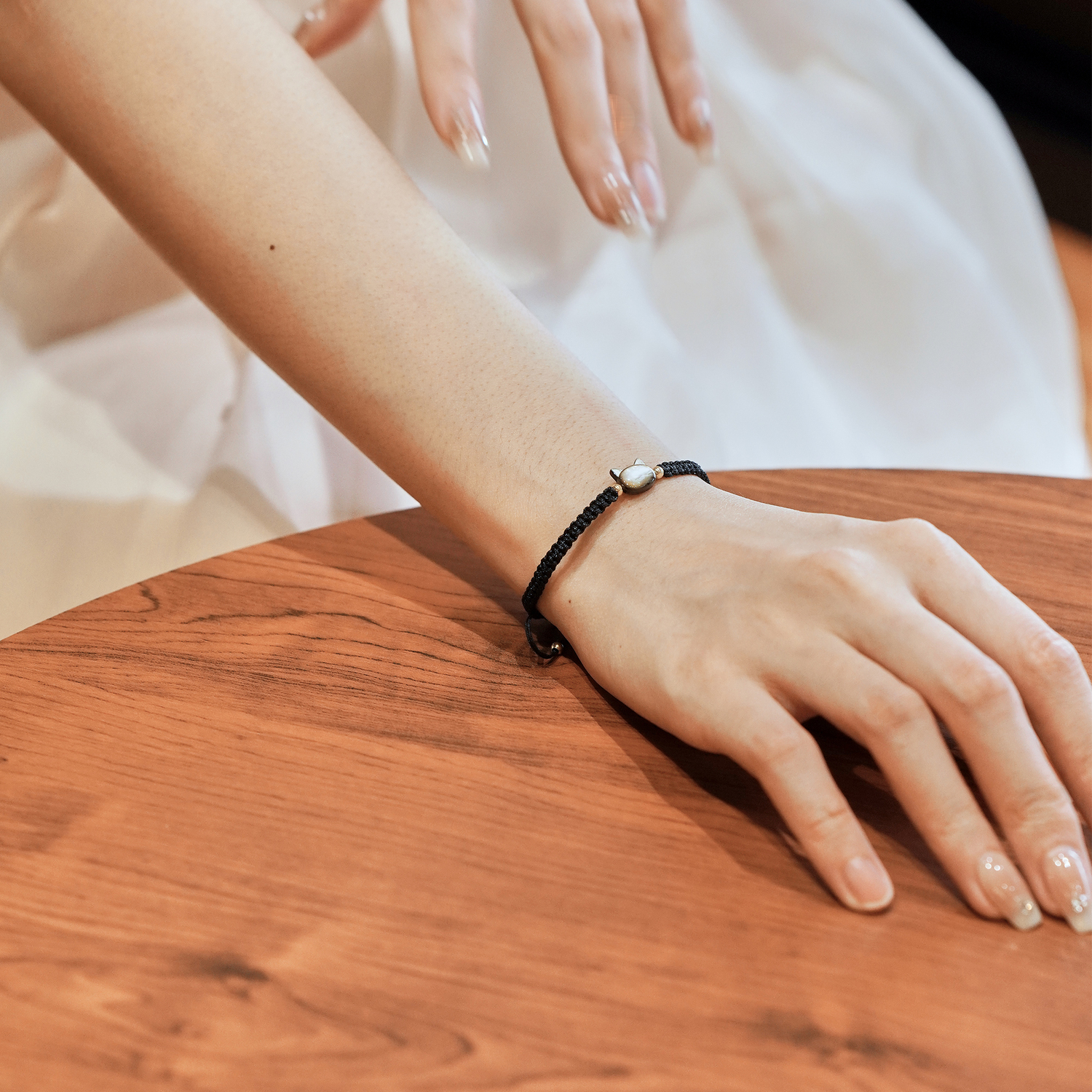 Цвет: черный шнур, белый кот + красная нить, белый кот