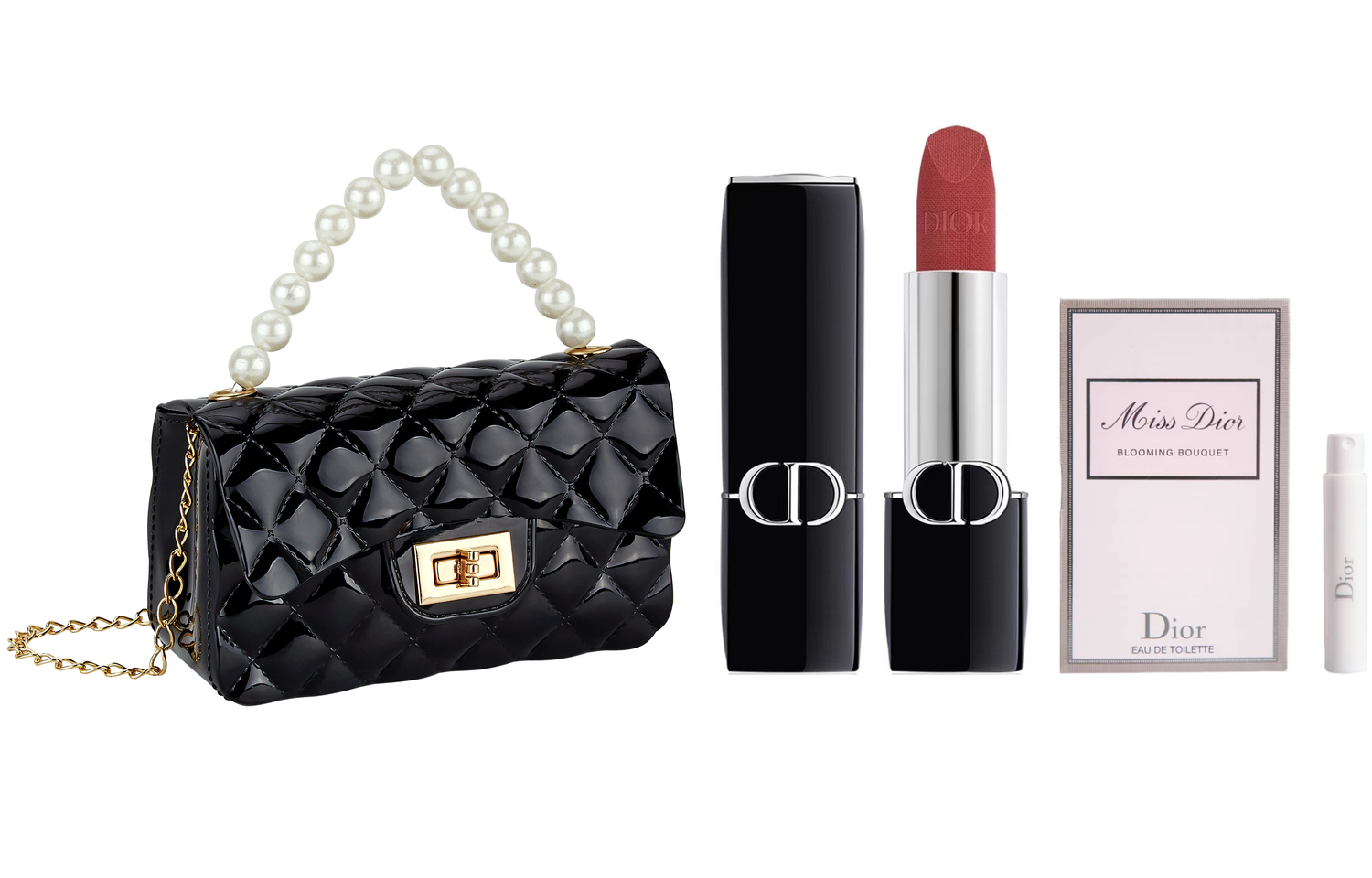 Комплект: Dio #720 3,5 г, велюровый деловой костюм + диск для ароматерапии «Белая камелия» + жемчужная сумочка